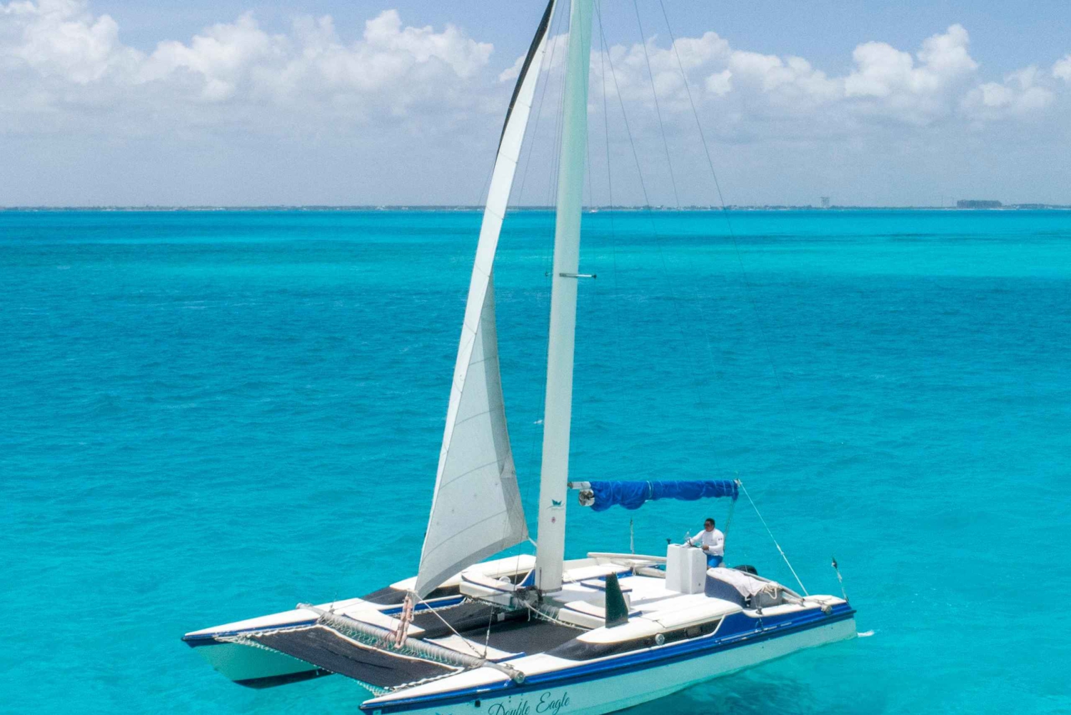 Oplev Isla Mujeres-bugten på denne sejltur med familie og venner. Lyt til god musik, drik fra den åbne bar om bord, spring i vandet og snorkel i det varme vand.