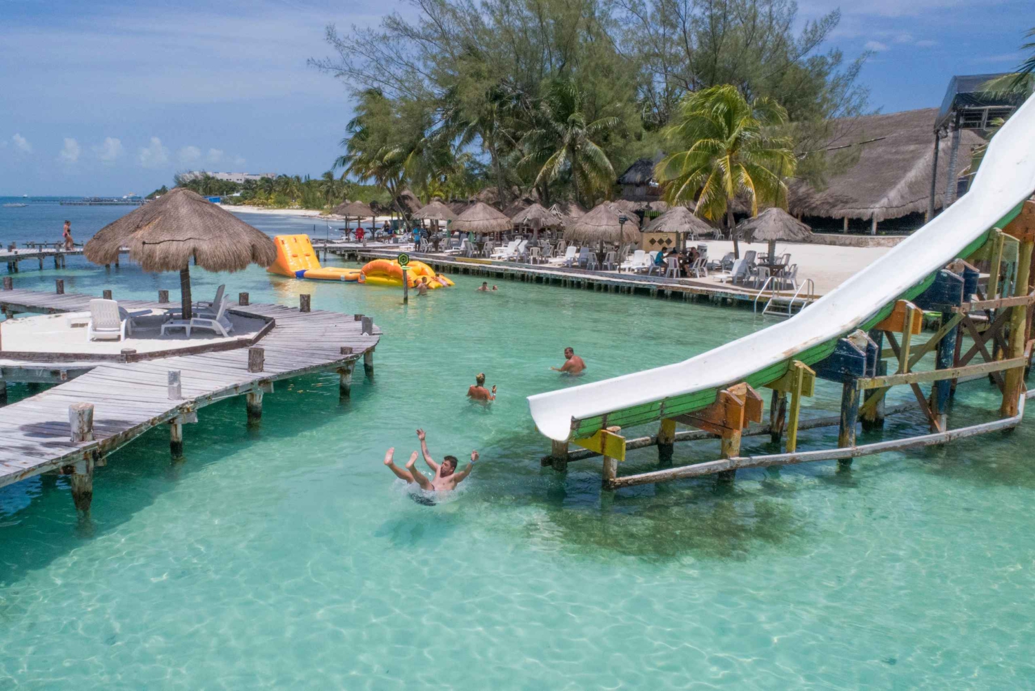 Overrask dig selv med de turkise farver i det mexicanske Caribien ombord på denne fantastiske katamaran med plads til 20 passagerer. Vi sejler 60 minutter fra Cancún til den smukke bugt Isla Mujeres, hvor vi snorkler i cirka 40 minutter omkring et spektakulært rev fyldt med havliv og undervandsstatuer. (Arrecife Bendiciones) Nyd brisen, slap af og nyd det naturlige caribiske landskab. Derudover stopper vi ved den lavvandede, turkisblå Playa Norte, hvor du kan nyde at springe fra båden ned i det krystalklare vand. På tilbagevejen kan du nyde den åbne bar ombord med sodavand, øl, rom, vodka og tequila! Denne alsidige katamaran er ideel til familie og venner, der ønsker at fejre en fantastisk fest på en sejlbåd eller en smuk og afslappende dag på havet. Hvad du kan forvente: Hvis du ikke kan lide at solbade, slappe af, dykke, feste, svømme, spise og drikke, kan vi ikke hjælpe dig. En autentisk caribisk oplevelse på kun 7 timer! Nyd det med familien. AmigoIncludes