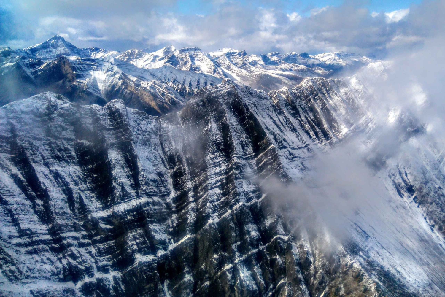 - Beundr udsigten fra luften over Mt Assiniboine og dens gletsjere