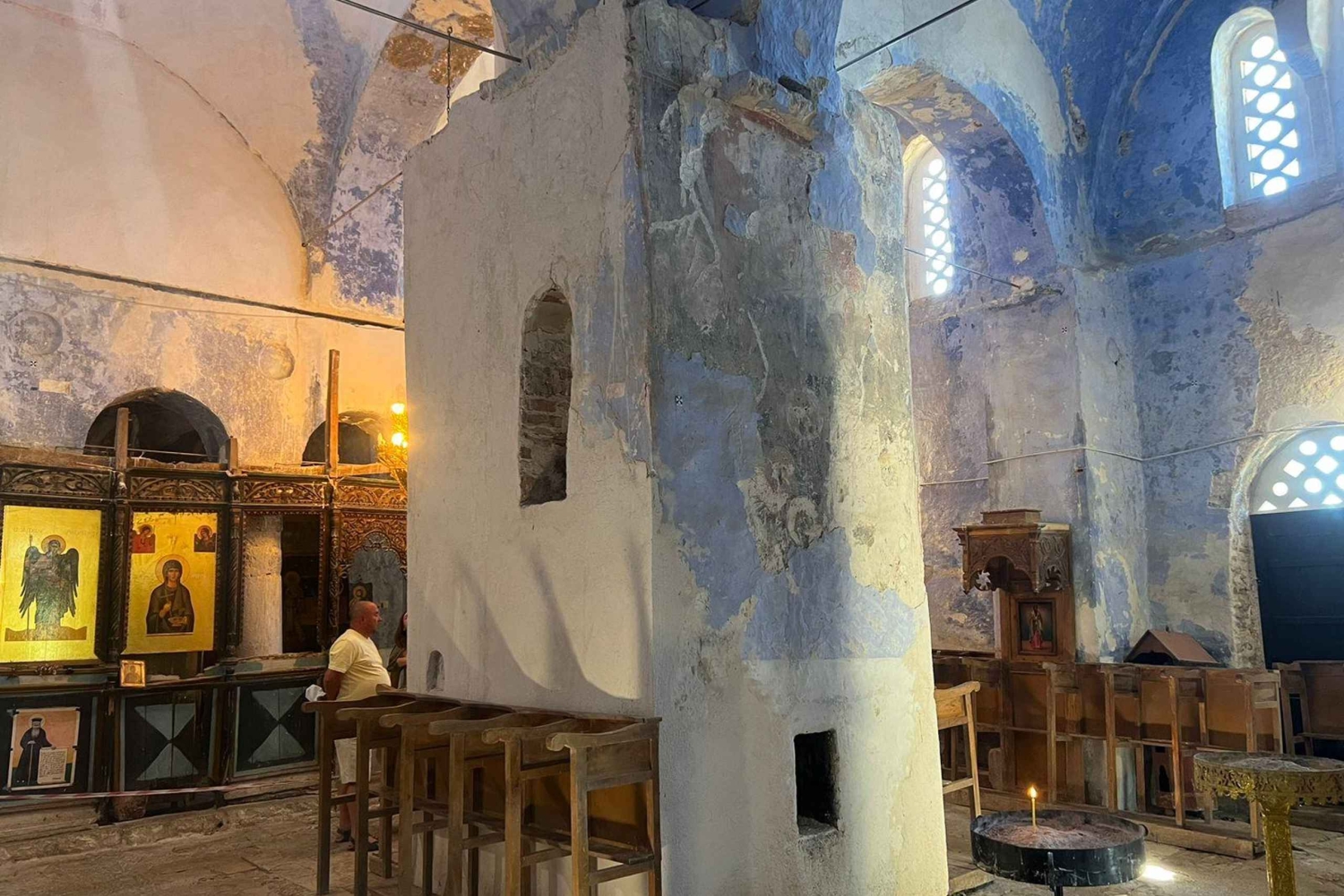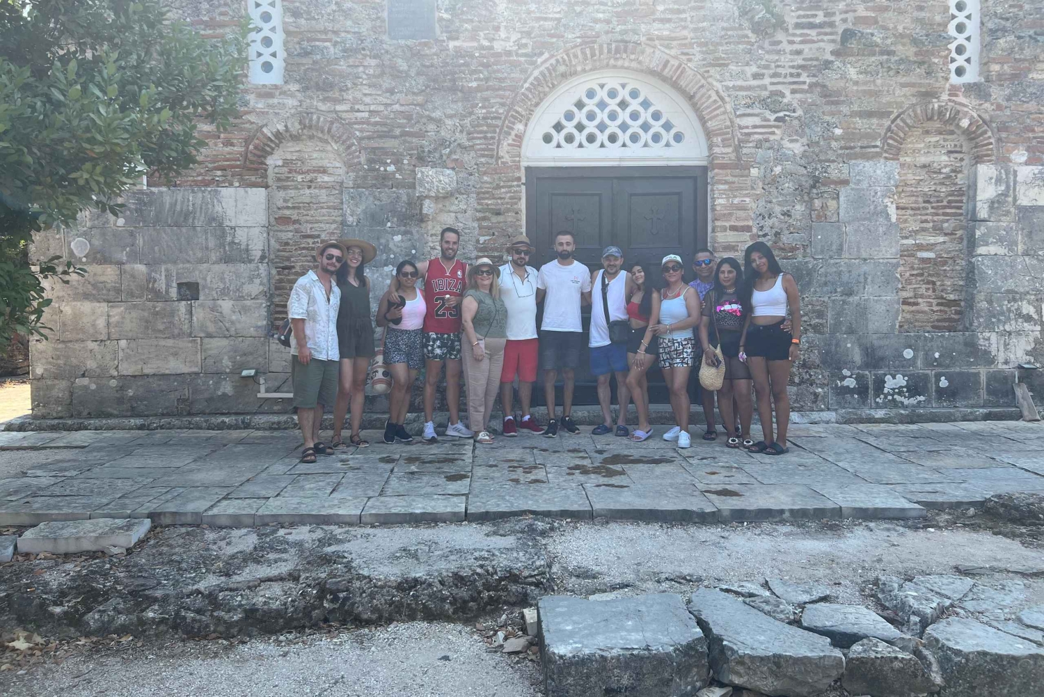 Besøg 4 forskellige steder på 1-dags guidet tur fra Sarandë og Ksamil. Nicholas-klosterkirken, se det blå øje, slentre gennem byen Gjirokastër, og beundr udsigten fra Lëkurësi-slottet. Efter afhentning på afhentningsstedet i Sarandë eller Ksamil kører du i airconditioneret komfort til det fredfyldte og historiske Sankt Nikolaj-kloster, Mesopotam. Sug til dig af den rolige atmosfære og de smukke omgivelser på et sted med åndelig refleksion og kulturel betydning. Fortsæt derefter til Blue Eye, et fantastisk naturvidunder. Beundr en kilde, hvis krystalklare vand giver mulighed for at se ned til over 50 meters dybde. Fra Det Blå Øje går turen til den charmerende by Gjirokastër, som er optaget på UNESCO-verdensarvsstedet. Udforsk den velbevarede arkitektur fra den osmanniske æra, det fascinerende Gjirokastër-slot og meget mere. Bagefter kan du besøge Lëkurësi-slottet og nyde den betagende udsigt over Sarandë og Det Joniske Hav. Turen afsluttes med aflevering i Sarandë eller Ksamil.Includes