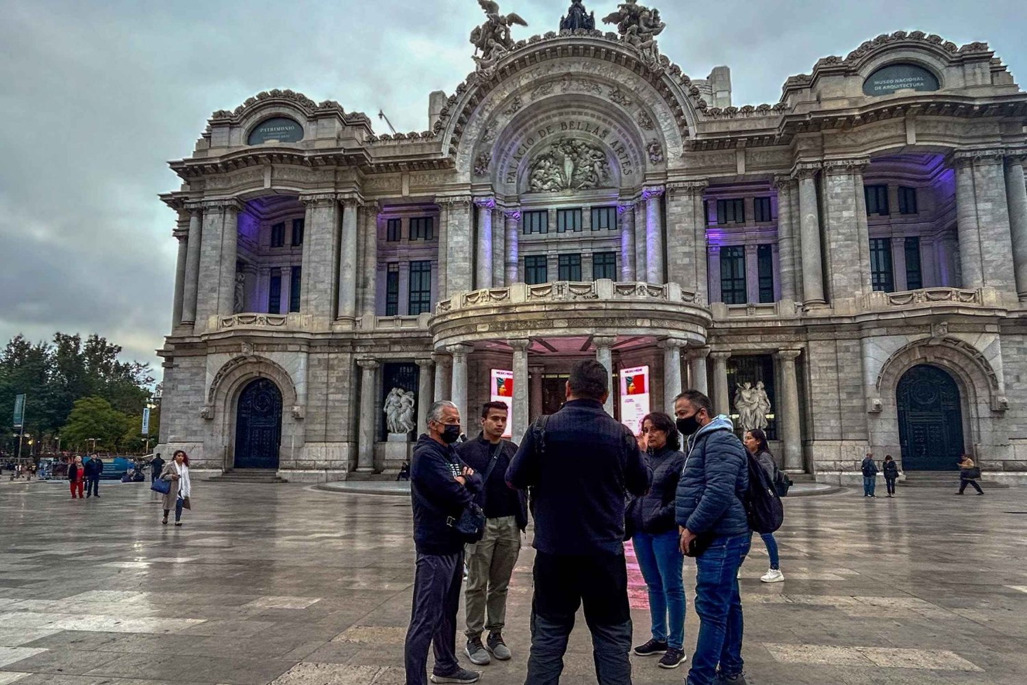 Erkunden Sie die Sehenswürdigkeiten in Mexiko-Stadt bei diesem nächtlichen Rundgang. Fahren Sie durch die historische Altstadt, um Sehenswürdigkeiten wie die Casa de los Azulejos, ein Franziskaner- und das Zócalo-Hotel, zu sehen, während sie für die Nacht beleuchtet sind. Treffen Sie Ihren Reiseleiter im Palast der Schönen Künste, der als der wichtigste kulturelle Veranstaltungsort in Mexiko-Stadt gilt. Schlendern Sie zum Palacio de Correos, um die neoklassizistische Architektur dieses Postamts zu sehen. Gehen Sie hinunter zur Fußgängerzone Madero durch das historische Zentrum. Erfahren Sie mehr über das historische Zentrum der Stadt, während Sie Geschichten hören und faszinierende Informationen über Gebäude wie die Casa de los Azulejos oder das alte Franziskanerkloster erhalten. Bewundern Sie den neokolonialen Stil des Zócalo Hotels. Fahren Sie weiter, vorbei an der offiziellen Residenz des mexikanischen Präsidenten im Nationalpalast. Spazieren Sie an der zum UNESCO-Weltkulturerbe gehörenden Kathedrale von Mexiko-Stadt vorbei und sehen Sie sich die Ruinen des Templo Mayor an, die einst der Haupttempel der Mexica-Bevölkerung waren. Beenden Sie Ihre Tour im Torre Latinoamericana, einem 44-stöckigen Wolkenkratzer, der vom Empire State of New York inspiriert wurde und einen Aussichtspunkt in der obersten Etage bietet. Wählen Sie eine Tour mit Tickets für diesen Aussichtspunkt oder die Option ohne Tickets für diesen Aussichtspunkt.Includes