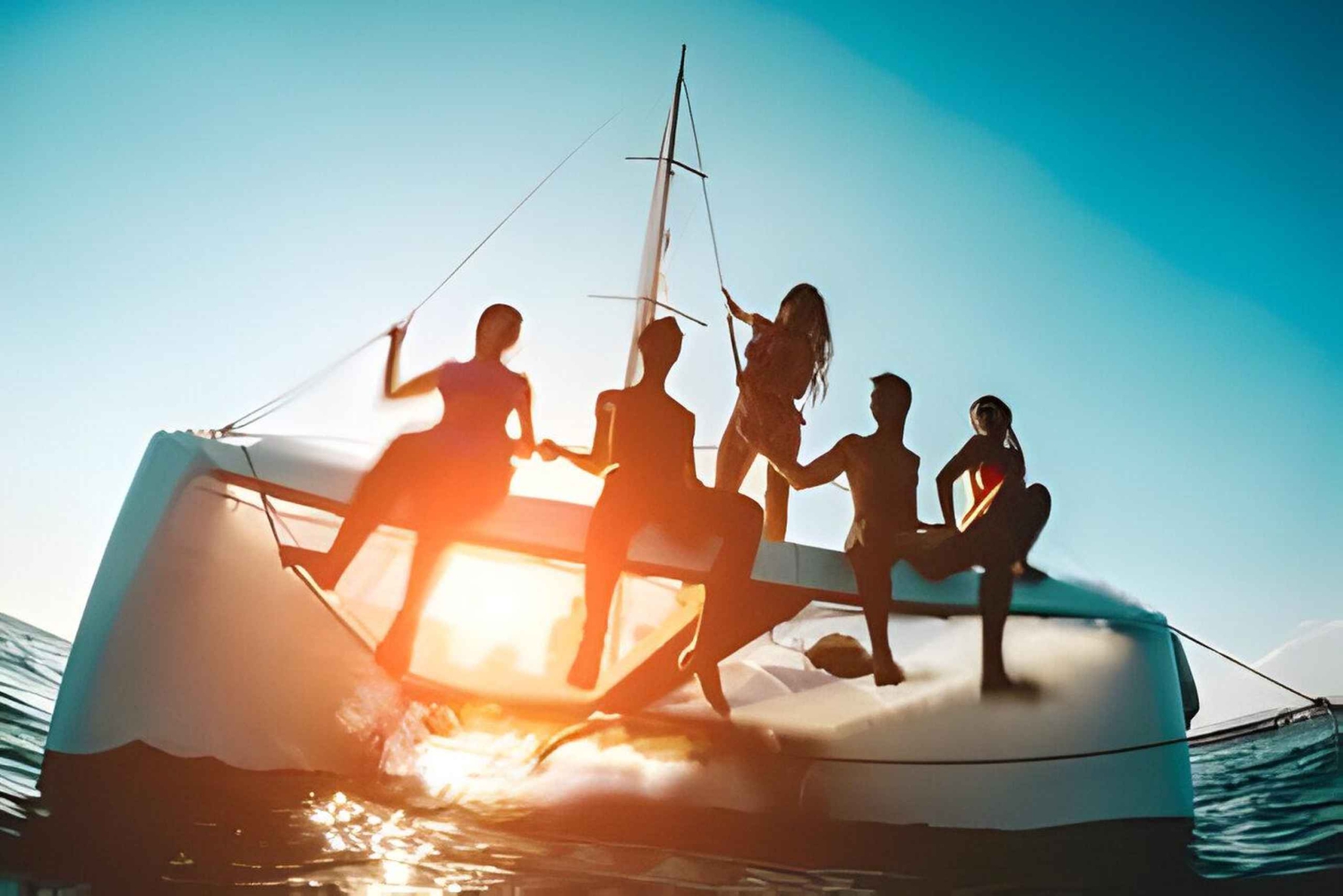- Disfrutarás de un hermoso paseo en un Catamarán de Lujo con bebidas incluidas