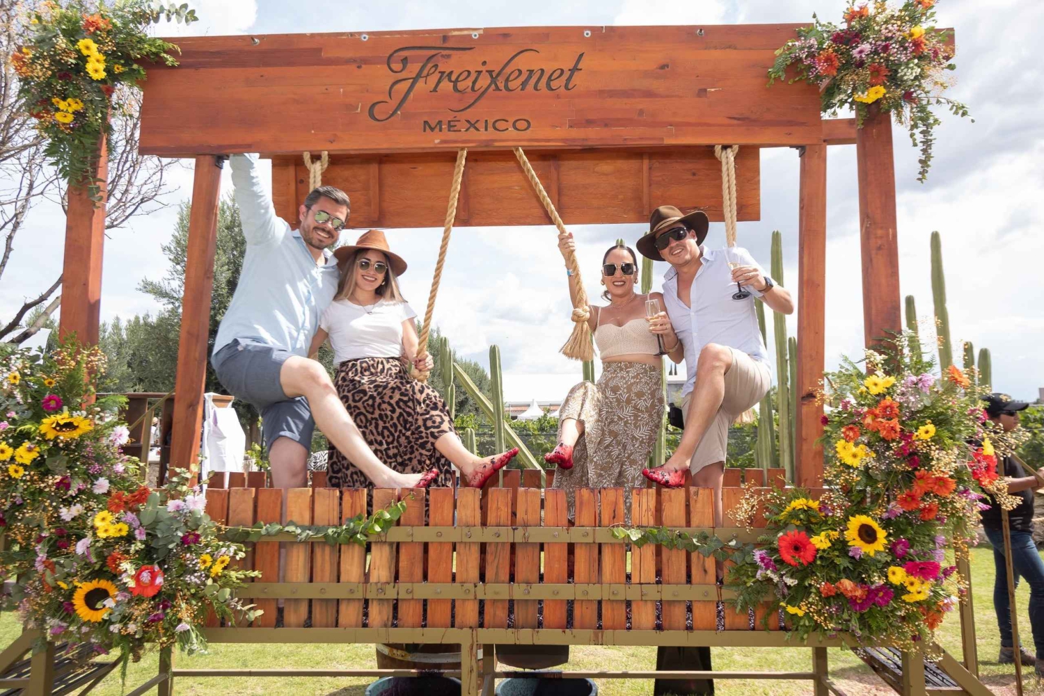 Disfruta de una deliciosa degustación de 14 quesos de la región queretana, además de dos copas de vino (tinto y rosado). Será guiada por el sumiller de la casa. Tequisquiapan Destacado por su cantera rosa, este pueblo te enamorará por sus callejuelas, sus museos y sus dos mercados centrados en el mimbre de De Palma. (Disfruta del tiempo libre). Un viñedo Conocerás el proceso de elaboración del vino, desde la recogida de la uva hasta el producto final. - Vivé Sala - Freixenet Baja 25 metros para llegar al cava y conocer US proceso de elaboración de tu vino, al final, degusta tu vino espumoso. - Viñedo Los Aztecas Enamórate del y estilo de este viñedo, disfruta de sus vinos mientras de fondo te impacta tu vista de la Peña de Bernal *El viñedo se elige bajo su disponibilidad y según la logística del día. Bernal Mientras recorres sus calles puedes disfrutar de un delicioso maíz quebrado, los nopales en su madre y la gran variedad de sabores en su esquite. No olvides tomarte una foto en su calle principal con la roca de fondo. (Disfruta del tiempo libre).Includes