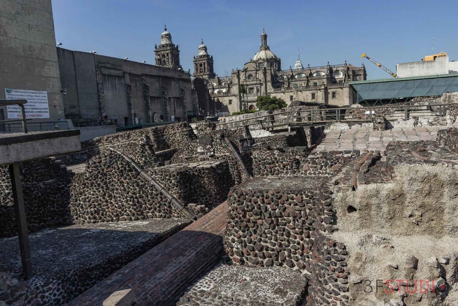 - Localiza restos de imponentes estructuras aztecas ocultos entre los edificios coloniales