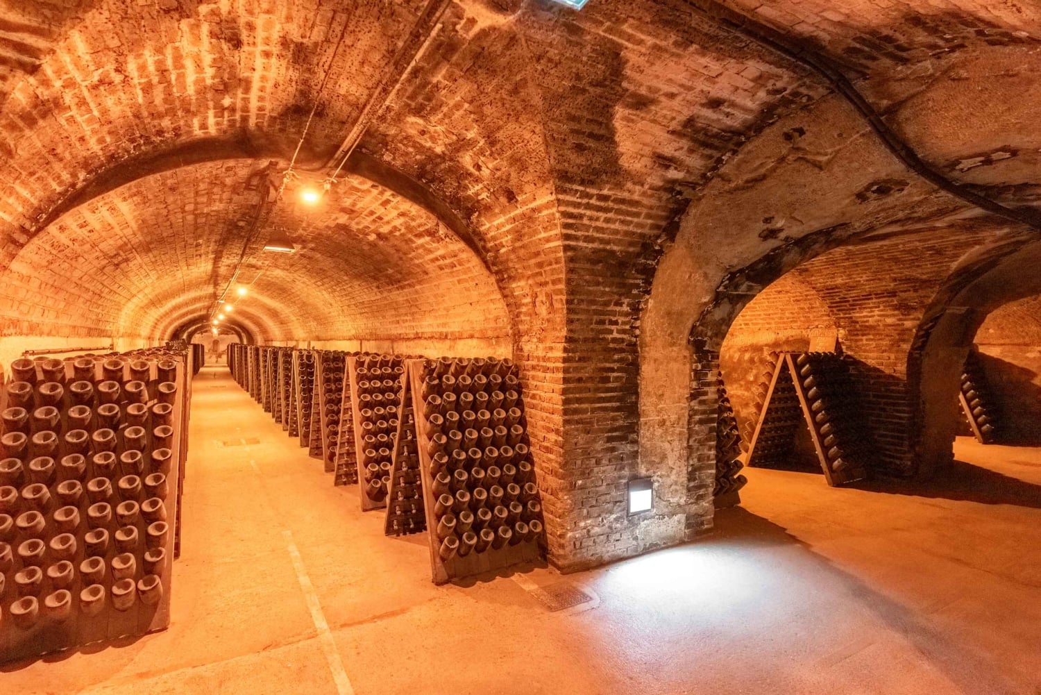 Once in Champagne, you will start with a guided visit to a major Champagne house (such as Moët & Chandon, Mumm, Veuve Clicquot, Mercier, Pommery, Lanson, or Nicolas Feuillatte). Explore the cellars, learn about the production process, and enjoy your first tasting.