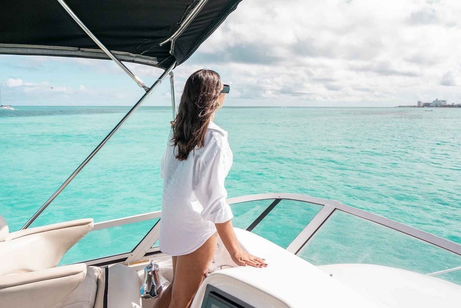 1 ReviewsPrivate Yacht Excursion from Cancun to Isla Mujeres Tour of the Cancun Lagoon to Isla Mujeres Included: crew, snorkeling equipment, fuel, and complimentary drinks.