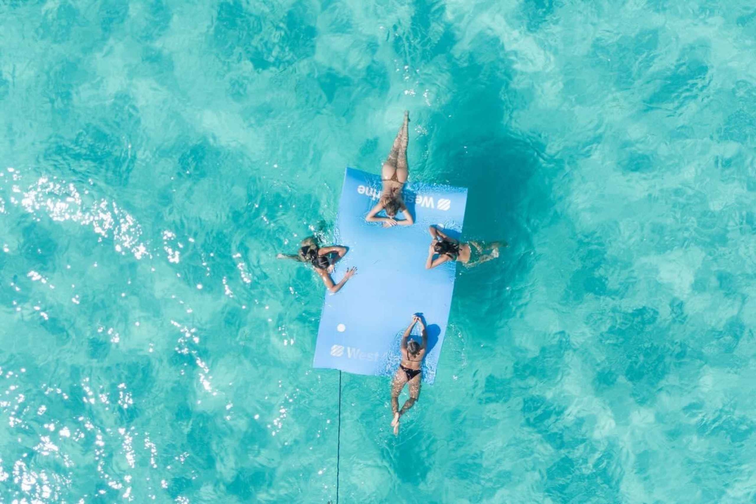Discover the turquoise waters of the Mexican Caribbean aboard your own private boat! This 8-hour excursion will allow you to enjoy this paradise to the fullest. We will start with a stop at the blanquizales, located in the center of the bay between Cancun and Isla Mujeres, where the blue water is an incredibly clear turquoise. Here, you can swim in waters approximately 3 meters deep. Then, we will snorkel with equipment included to explore the marine life in this beautiful area of a reef where there is a sunken ship. Afterwards, we will sail to Punta Sur and the Garrafón area, known for its crystal clear waters and abundant marine life. It is the perfect place to swim and enjoy the vibrant turquoise blue color. Our next stop will be Playa Norte, recognized as the most beautiful beach on the island and certified with the Blue Flag for its quality and cleanliness. We will end the tour by admiring the sunset in the middle of the bay, a truly magical experience.Includes