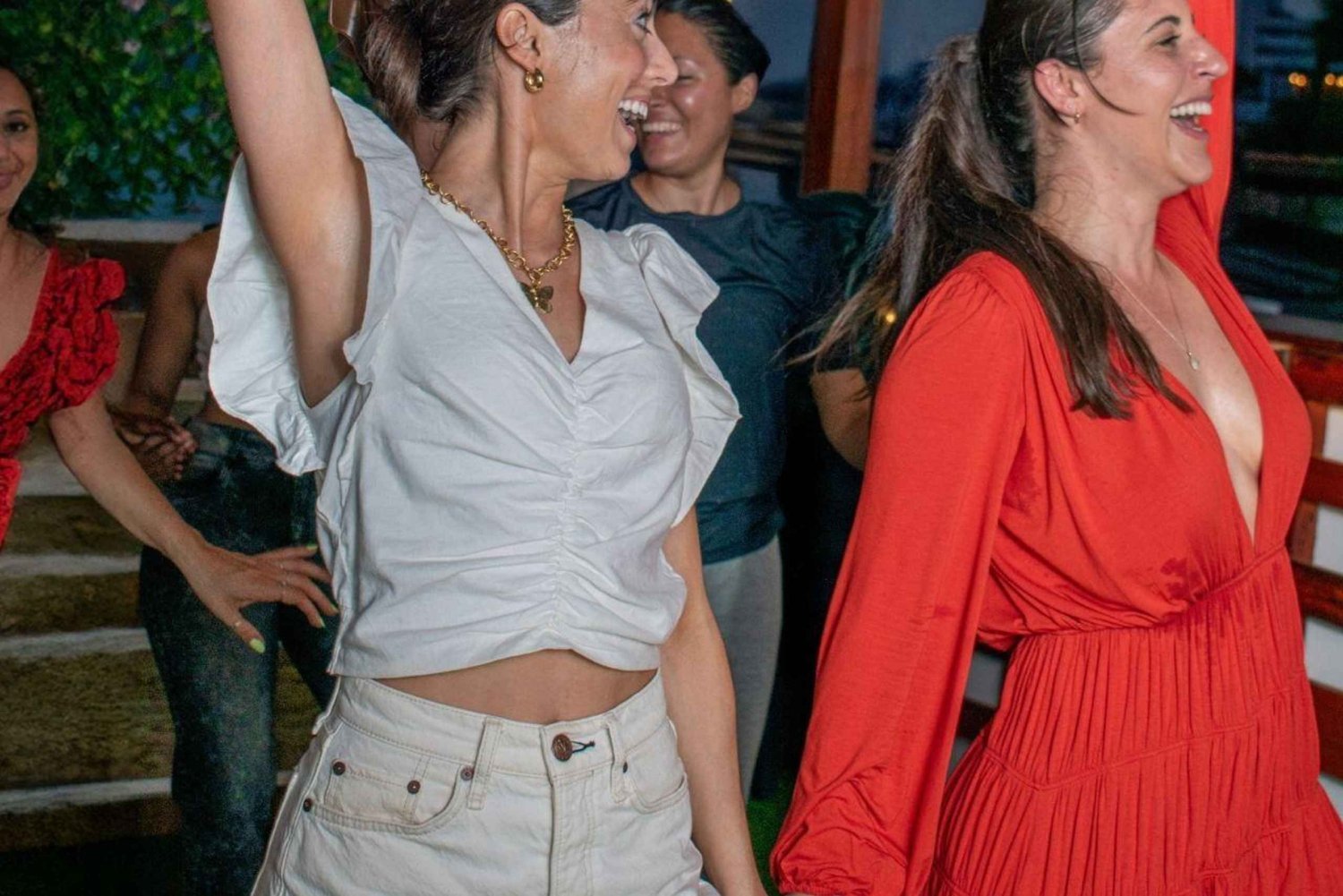 First, we will welcome you with a glass of red wine so you can get to know us better! Then we will learn the most popular Latin rhythms, which will be: Salsa, Bachata, and the local genre of Cartagena: La Champeta! All in an intimate and welcoming atmosphere. It doesn't matter if you come alone or with a partner. While you learn, you can drink red wine, beer, and the typical rum of our country. You'll learn the basic steps and turns of each genre, explained step by step with patience because our intention is for you to really learn and be able to go out and feel confident in any bar or nightclub. We'll also teach you the most common slang words in Cartagena and how you can use them and sound like a local! When the class is over, we will send you a video tutorial made by us with all the steps learned during the class, in case you want to continue practicing afterwards! We will be on the private rooftop of our house located in the Getsemaní neighborhood! A roof with grass as a floor, perfect for dancing barefoot! It is located on the third floor, from where you have a good view of the surrounding neighborhood and the San Felipe fort, as well as the sunset!Includes