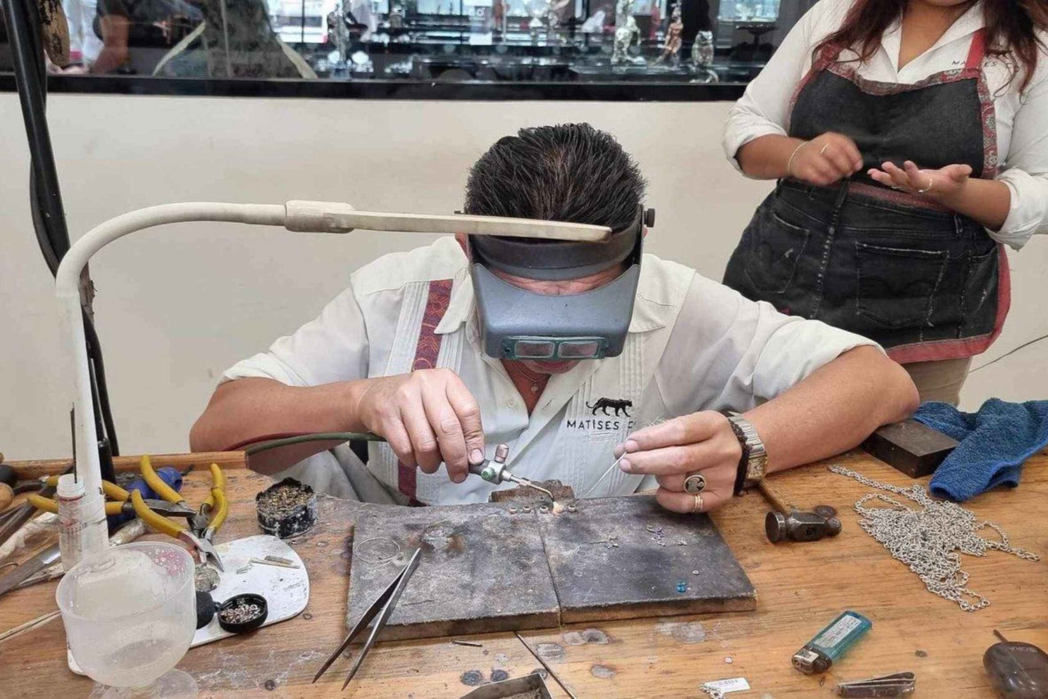 The activity begins with a reception at Matisses Tents, located in the heart of Puerto Morelos. Upon arrival, you will be greeted with a Mexican folkloric dance show, which will transport you to the cultural and traditional richness of Mexico. You will enjoy traditional Mexican music and dance, while familiarizing yourself with the surroundings and atmosphere of the Matisses Shops. VISIT TO THE JEWELRY AND TEQUILA FACTORY (1 HOUR 45 MINUTES) After the reception, you will head to a jewelry store and tequila factory located on the same site. There, you will be able to admire and purchase high quality and exclusively designed jewelry, while also tasting artisanal tequilas and learning about their production and history. For 1 hour and 25 minutes, you will enjoy the cozy atmosphere of the jewelry and tequila shop, while exploring the different jewelry and tequila options offered. FREE TIME IN PLAYA DEL CARMEN (2 HOURS AND 30 MINUTES) After the visit to the jewelry and tequila store, you will have 2 hours and 30 minutes of free time to explore Playa del Carmen's 5th Avenue. You will be able to walk along the avenue, visit stores and restaurants, and enjoy the vibrant atmosphere of the area. If you wish, you can also visit the Mamitas beach club, where you can enjoy a discount on the consumption. However, you also have the option to explore other places along 5th Avenue or just relax in a café or restaurant. RETURN TO THE HOTEL Finally, after a day full of culture, tradition and fun, you will return to the hotel.Includes