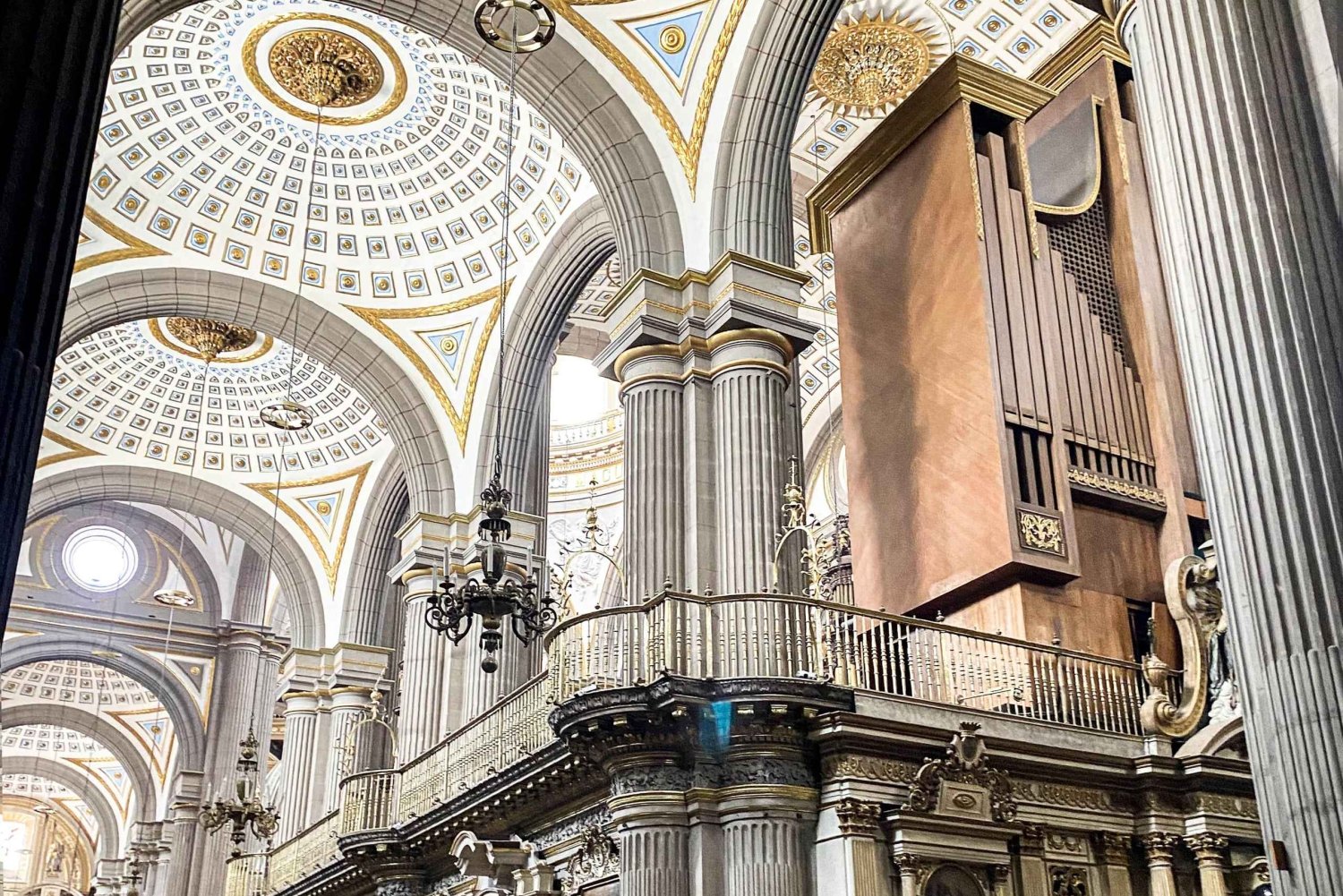 You will start your trip in Mexico City, from where you will take a road surrounded by spectacular landscapes with the mountains in the background, heading east of the city. During the journey, you can admire the impressive views of the Popocatépetl and Iztaccíhuatl volcanoes, which, although still active, look majestic with their glacier-covered cones. After enjoying this impressive tour, you will arrive at the picturesque town of Cholula. This site owes its name to the goddess Cholula, protector of life, light, and fertility, and for this reason, the city of Quetzalcóatl was considered a sacred place. From here, we will head to Santa María Tonantzintla, a unique church that blends two religious traditions, indigenous and Christian. It is recognized as the jewel of indigenous Baroque art. In addition to exploring this monument, you will have the opportunity to delve into the rich local history and culture. But the tour does not end there. You will arrive in Puebla, famous for its delicious cuisine, colonial architecture, and traditional ceramics. On a guided visit of the historic center, you will visit the imposing Cathedral and other landmarks of this charming 'City of Angels.' Before returning to Mexico City, you will have time to sample the local food (if you select the option with food) and explore the Parián Market. This market is the most famous in Puebla, with more than 112 stalls decorated with Talavera bricks and tiles. Here you can find typical regional handicrafts, such as tableware, wax dolls, and all kinds of pottery. A cultural experience not to be missed!Includes