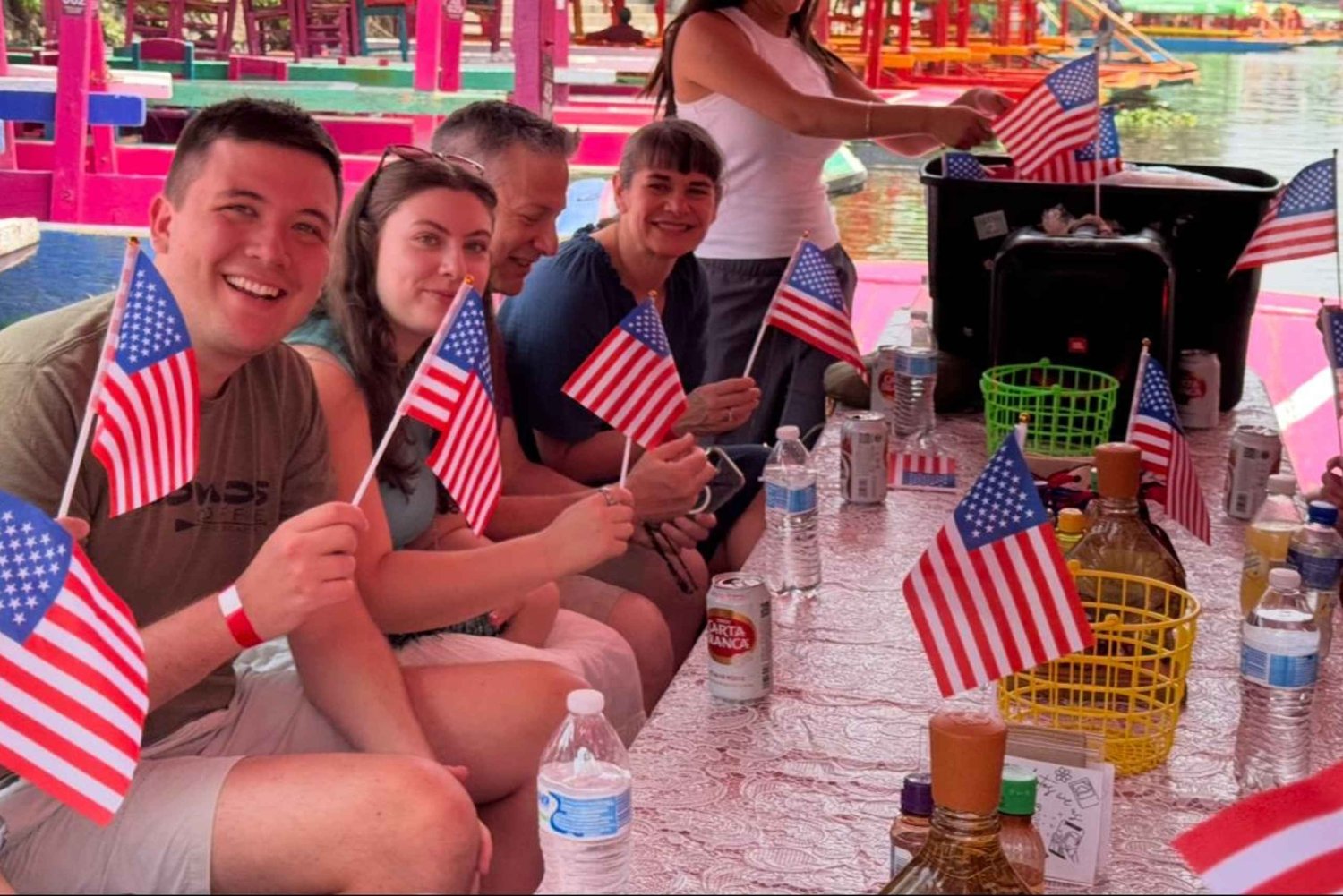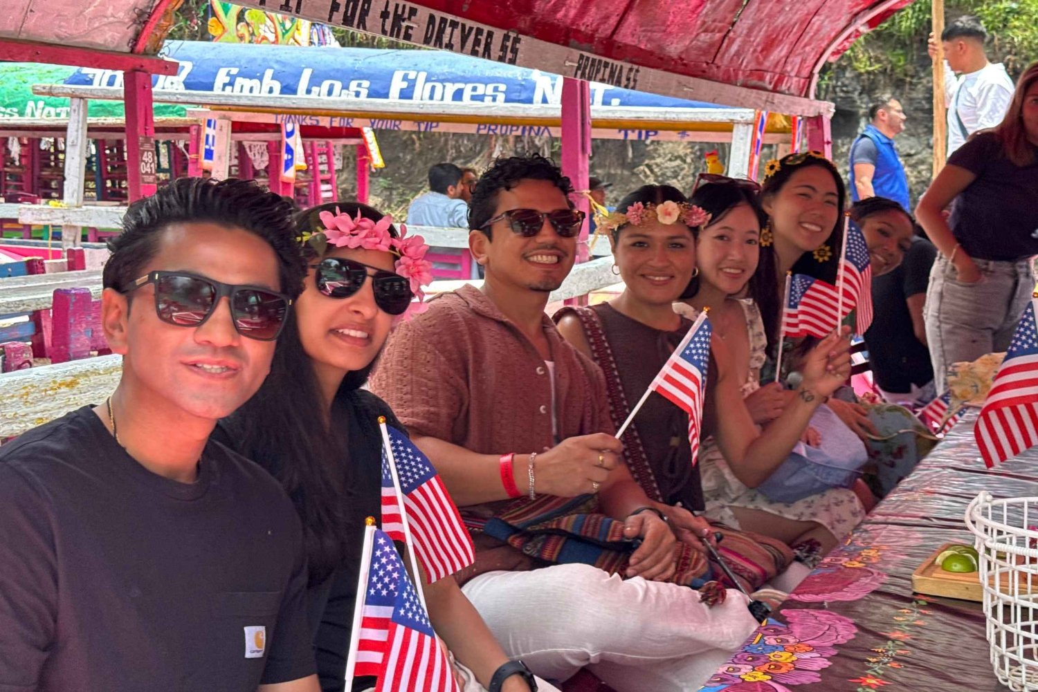 Relax for 2 hours from the stress of the city on a Gondola boat ride through the Aztec empire canal called Xochimilco, declared a World Heritage Site by UNESCO in this authentic and cultural experience. Listen to informative commentary from your local college guide along the route from the comfort of your boat. Once we're on the boat, we'll give you a gifted chupito shot of tequila and mezcal to drink, which you can take home. You can also order all the beer, water, soda and TEQUILA you want at any time while you try the tamarind and marzipan candy. No one else in the area has those candies. Let's play Mexican bingo and win a replica of the game to take home. Let's disembark on the island called chinampa, which connects the city to the Xochimilco lagoon via its iconic bridge. On the island, we'll eat four Mexican tacos with vegetable toppings and flavored Aztec pulque. Pulque is a fermented tequila-based agave drink. Food Vegetarian Options Available. We'll give you 15 minutes to explore the island and go to the bathroom. You can optionally purchase seasonal cocktails. Board the boat to try the traditional Mexican Michelada Beer Coctkail and enjoy the recreational activities that your college guide has prepared for you at the Mexican Fiesta. Let's return to the point where the boat set sail, but not before sipping on MEZCAL and leaving with a smile from ear to ear. Ask your university guide questions about the city and get recommendations for places and things to do in the city. Don't like crowds? All schedules are good, but we recommend the 7:00 a.m. Secret Canals Tour, a unique experience not everyone can enjoy. You'll be the first to explore the canal. You'll swap traditional navigation routes for secret ones, tacos for unlimited strawberry, pineapple, apricot, and blackberry cookies, and pulque for unlimited coffee. Everything else is still included.Includes
