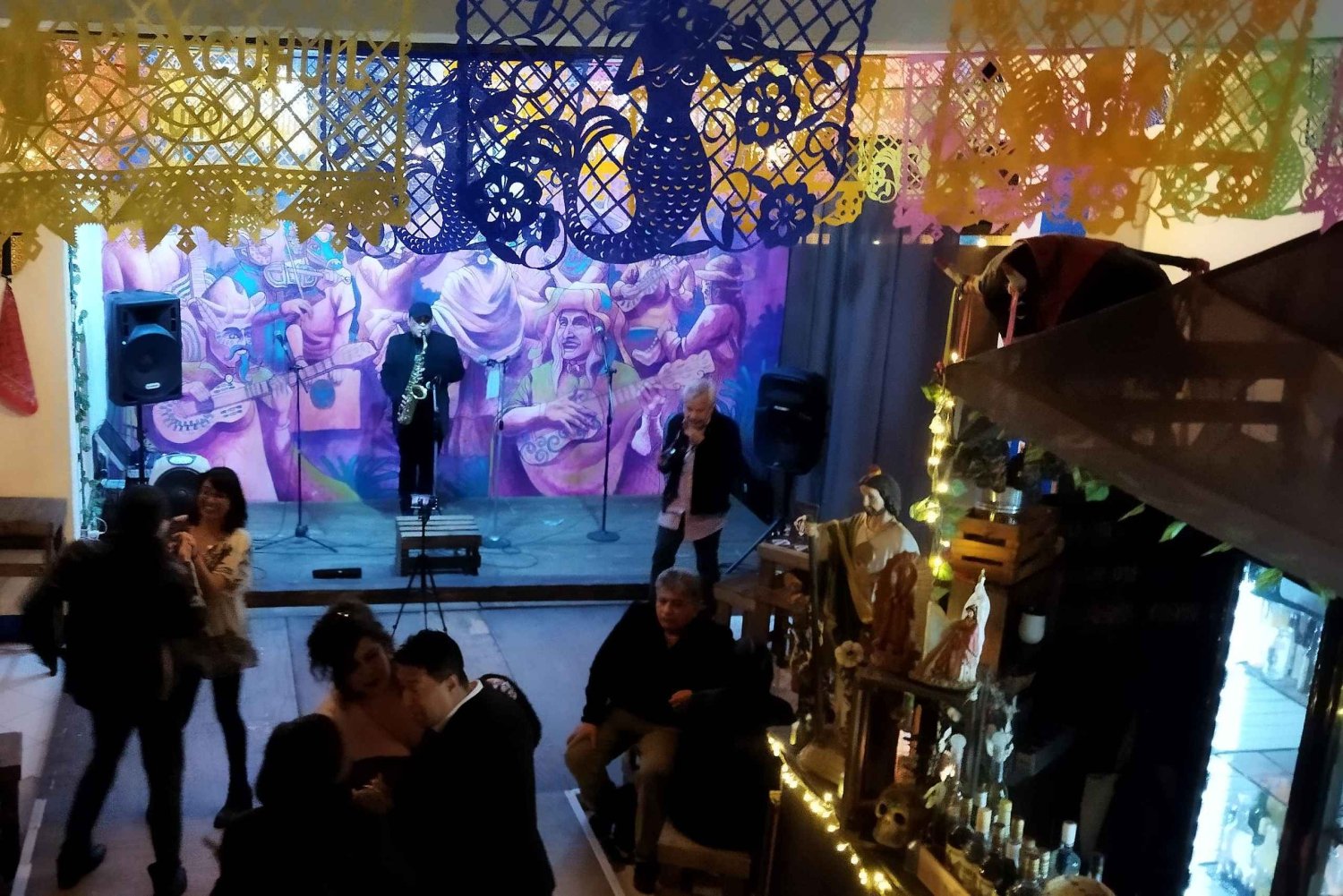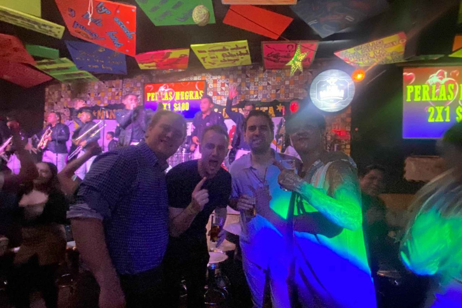 Join a bar crawl in Mexico City's historic center and visit night bars and clubs where locals have fun and meet new people. Enjoy a fusion between a themed bar tour, Mexican 'pubs,' and cool party night clubs. Meet other party-goers, practice your best Latin steps of salsa and bachata, taste ancestral drinks, attend stage shows, and enjoy live traditional music for an epic ending, all with great hosts leading the way. Enjoy a beer, mezcal shot, pulque (a traditional drink), and tequila shot. Visit 4 places, staying 45 to 50 minutes in each one.Includes