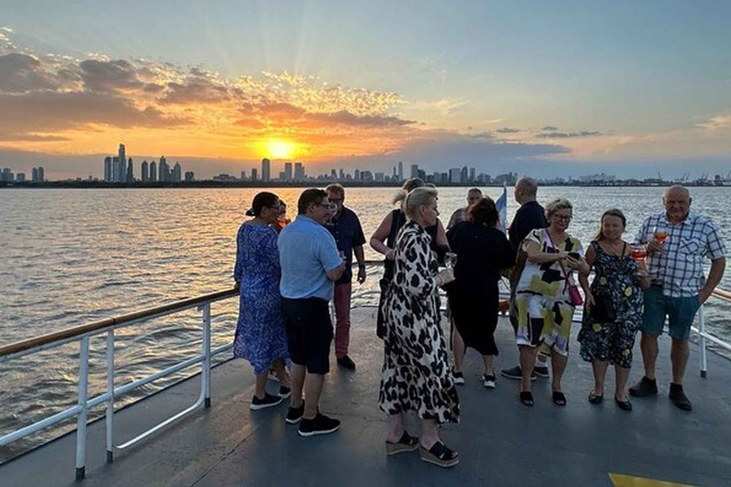 Embarquez pour une expérience unique en bateau à Puerto Madero, alliant vues panoramiques, bonne musique et boissons à volonté. Commencez votre voyage au port de Puerto Madero, où vous serez accueilli à bord avec un open bar de 2 heures proposant des cocktails, des bières artisanales et des boissons non alcoolisées. Vers 18h30, le bateau lève l'ancre pour une navigation d'une heure dans le port de Buenos Aires. Admirez le magnifique coucher de soleil sur les toits de la ville tout en glissant sur l'eau, qui vous offre une nouvelle perspective sur Buenos Aires. Que vous souhaitiez vous détendre, partager un moment privilégié ou simplement profiter de la beauté de la ville depuis l'eau, cette expérience est parfaite pour tous. Un parking gratuit est disponible à l'embarquement, ce qui est pratique pour les clients arrivant en voiture. La visite se termine à Puerto Madero, où vous pourrez profiter des derniers instants de la soirée et repenser à cette expérience mémorable. Que vous soyez un habitant de Buenos Aires ou un visiteur, ce tour en bateau vous offre une façon relaxante et inoubliable de découvrir la ville.Includes