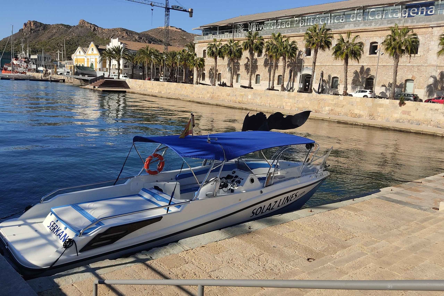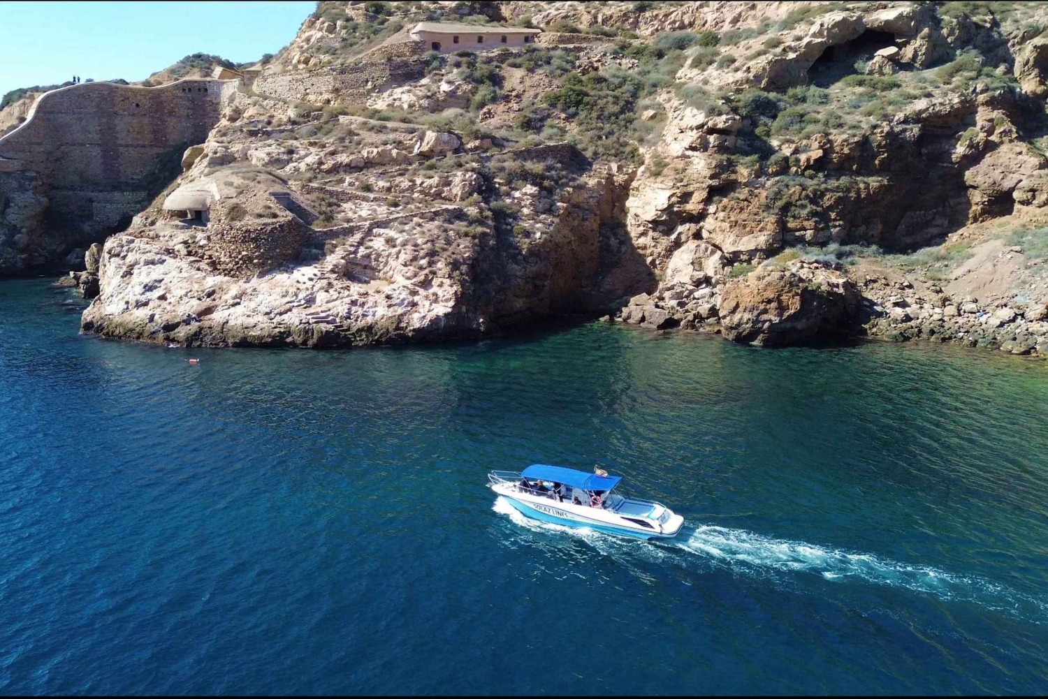 Une excursion en bateau complète et divertissante au cours de laquelle nous partons du port de Carthagène, en observant l'arsenal militaire, les chantiers navals Navantia, plusieurs batteries côtières telles que le Fort de Noël, la Punta de la Podadera, La Algameca Chica, El Arco de Amalia, La Algameca Grande, d'où est parti le célèbre or de Moscou, l'Isla de la Torrosa, la plage de Fatares, avec ses couleurs rouges et vertes particulières des rochers des falaises ; l'île de la Torrosa, la plage de Fatares, avec les couleurs rougeâtres et verdâtres des rochers des falaises, et enfin l'île de las Palomas, le seul endroit de la région de Murcie où niche le puffin de Cendrillon. L'itinéraire est commenté en anglais et en espagnol. L'équipage du bateau est composé d'un skipper professionnel. Bateau pour 12 passagers seulement. WC et BAR à bord.Includes