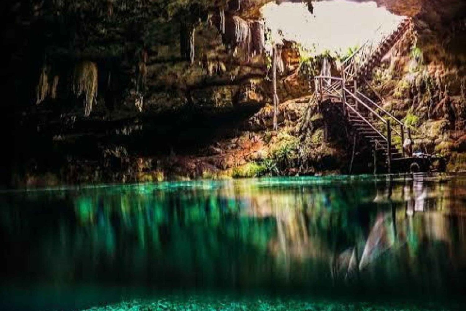 Plus qu'une simple excursion, il s'agit d'un voyage au cœur de l'eau et de l'esprit naturel de la jungle. Vous explorerez des cénotes mayas cachés au cœur de la nature, entourés de végétation tropicale, d'oiseaux et du doux murmure de la forêt. Explorez quatre cénotes gérés par des communautés locales lors d'une excursion au départ de Mérida. Rendez-vous dans les zones rurales, où les cénotes demeurent dans leur état naturel, à l'écart des foules de touristes. Faites une pause à mi-parcours pour savourer un repas traditionnel typique de la région. Au cours de la journée, explorez quatre cénotes distincts : deux cénotes ouverts et deux cénotes en grotte. Chacun est unique et possède son propre charme. Certains sont de véritables joyaux cachés. Visitez un cénote aux eaux d'un bleu profond, doté de plateformes de saut, où vous pourrez plonger de 3 ou même 10 mètres si vous êtes d'humeur aventureuse. Découvrez un trésor caché aux eaux turquoise cristallines et aux superbes formations minérales telles que les stalactites et les stalagmites. Visitez un cénote réputé dans tout le Yucatán pour sa beauté naturelle et sa végétation luxuriante. Il a même été mis en scène dans des vidéoclips et visité par divers artistes. Enfin, explorez un magnifique cénote souterrain où, si vous osez contempler l'abîme et ses cavités immergées, vous comprendrez pourquoi les anciens Mayas croyaient que les cénotes étaient des portes d'accès au monde souterrain.Includes