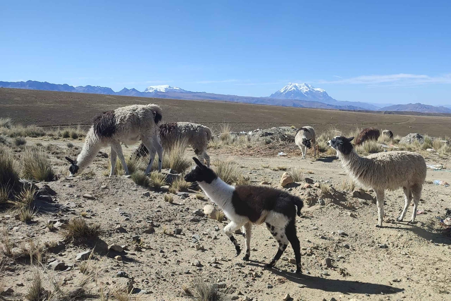 Cette activité commence vers 8h30, en fonction de votre lieu d'hébergement. Nous viendrons vous chercher à votre hôtel (dans le centre-ville uniquement) entre 8h00 et 9h15, puis nous poursuivrons la visite de ces attractions. Le mont enneigé Chacaltaya est situé à 27 km du centre de La Paz, à une altitude de 5 400 mètres au-dessus du niveau de la mer, et était autrefois l'une des pistes de ski les plus hautes du monde. Aujourd'hui, c'est un magnifique point de vue sur les Andes, avec les Lagunas de los Colores (lagunes colorées), un point de vue sur la ville de La Paz, le lac Titicaca et les hauts plateaux boliviens. Au cours de cette activité, vous pourrez parfois observer des lamas, des alpagas, des oiseaux et des viscaches. Cette randonnée commence à 5 300 mètres (où le transport arrive si la route est dégagée). Vous grimperez ensuite jusqu'au premier sommet à 5 400 mètres, où vous pourrez profiter d'une randonnée en haute altitude. L'ascension est relativement facile lorsqu'il y a peu de neige, mais elle devient difficile en raison de l'altitude et du manque d'oxygène. Si vous vous sentez mal, vous pouvez retourner au véhicule à tout moment. Le trajet de Chacalataya à la Vallée de la Lune dure environ 1 heure et 30 minutes, en fonction principalement du trafic du jour. La Vallée de la Lune est située à environ 39 km de la montagne enneigée de Chacalataya, et nous descendons à 3 200 mètres d'altitude. Nous y trouvons une zone érodée avec des obélisques d'argile et, parfois, des vizcachas, animaux typiques des hauts plateaux. Il suffit d'imaginer et de se sentir comme sur la lune à côté des formations éoliennes. Une fois la visite terminée, nous retournerons au centre-ville de La Paz, où nous ferons un arrêt près de l'église San Francisco, vers 15h30 environ.Includes