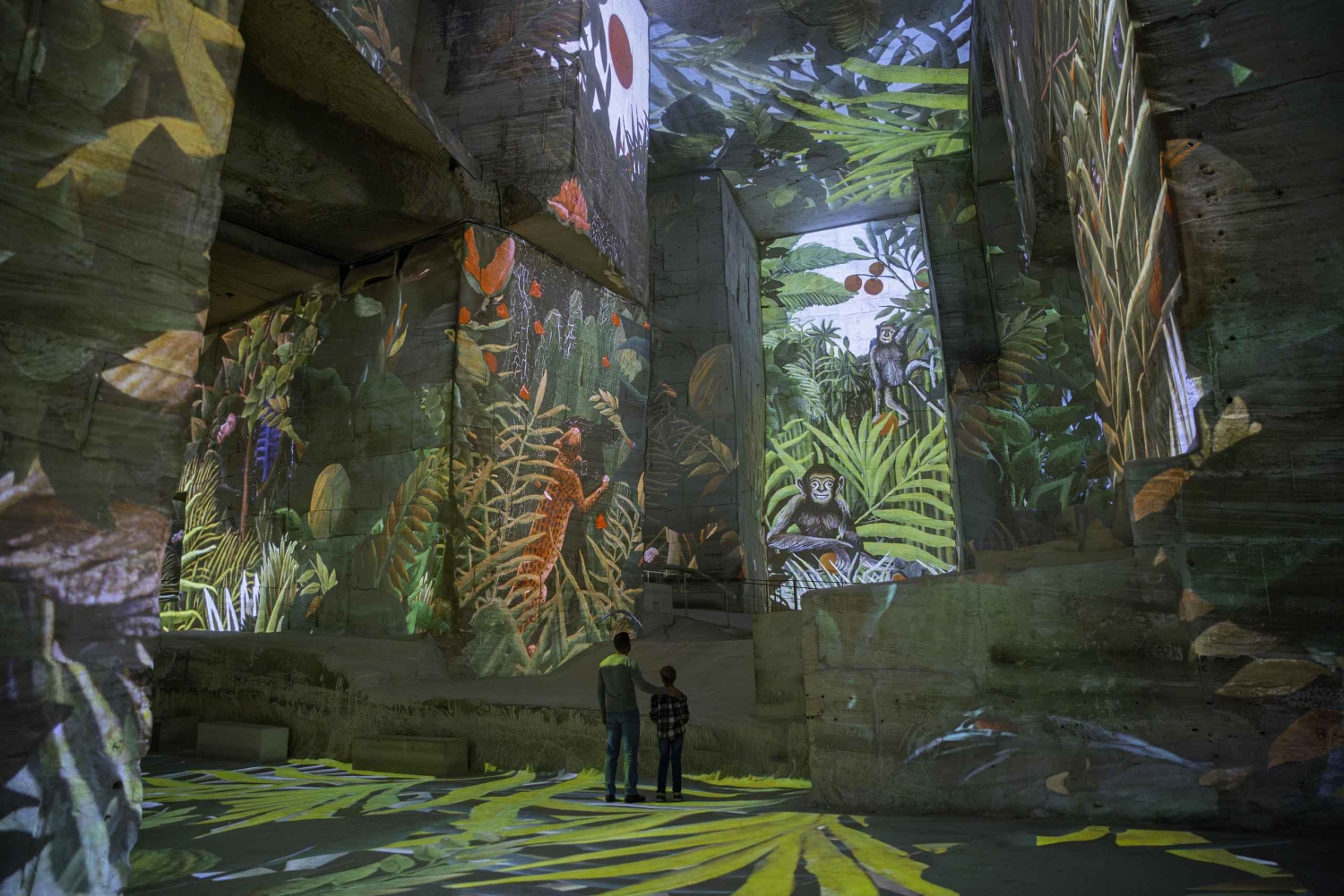 La seconde exposition vous embarque dans l’art naïf et l’univers d’Henri Rousseau, aussi appelé 'Le Douanier Rousseau'. Ses œuvres oniriques et parfois enfantines s’animent sur les parois rocheuses des Carrières des Lumières.