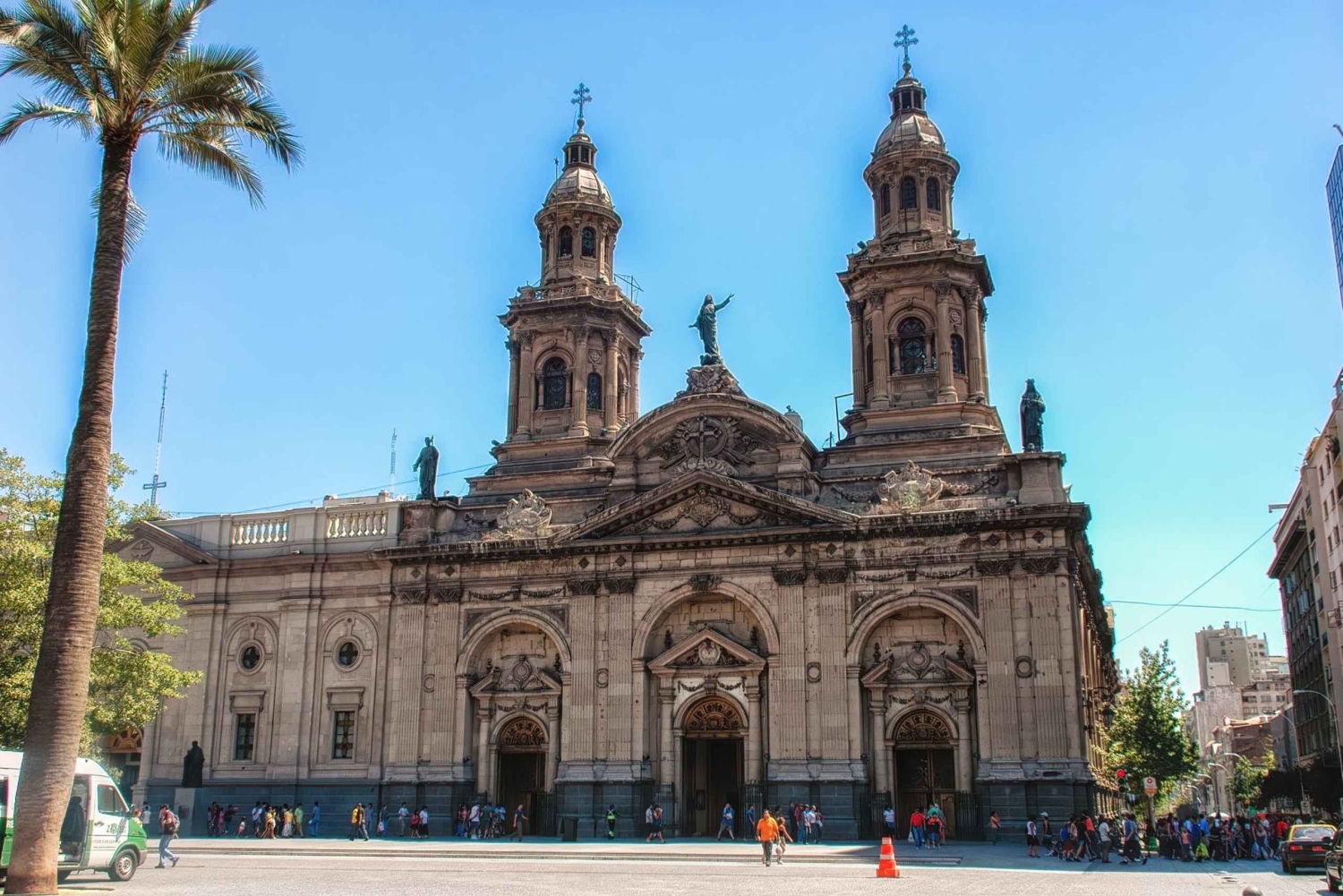Cette visite privée à pied avec Rosotravel dévoile le cœur de la vieille ville de Santiago, où le charme colonial rencontre l'effervescence moderne. Promenez-vous sur les places historiques, admirez l'architecture grandiose et écoutez les histoires captivantes de votre guide privé agréé. Que ce soit pour une courte visite ou une expérience prolongée, plongez dans le riche passé et le présent dynamique de Santiago. Réservez dès maintenant ! Réservez une visite privée à pied de 2 heures dans la vieille ville de Santiago et découvrez les joyaux historiques et culturels de la ville avec un guide expert. Commencez par la Plaza de Armas, le cœur de Santiago depuis sa fondation en 1541. Entourée de grands bâtiments coloniaux, cette place a été le témoin de siècles d'histoire. Admirez l'impressionnante cathédrale métropolitaine, un magnifique exemple d'architecture néoclassique, et découvrez son importance en tant que siège de l'archidiocèse de Santiago. Continuez jusqu'au Palais du Congrès national, un élégant bâtiment du XIXe siècle qui abritait autrefois le pouvoir législatif chilien. Écoutez les récits des luttes politiques et des réformes qui ont façonné la nation. À proximité, le musée chilien d'art précolombien rend hommage au riche patrimoine indigène des Amériques. Bien que l'entrée ne soit pas incluse, votre guide partagera avec vous des informations fascinantes sur la remarquable collection du musée. Sur la place de la Constitution, admirez l'imposant palais de La Moneda, siège du gouvernement chilien. Découvrez l'histoire dramatique de ce chef-d'œuvre néoclassique, y compris le coup d'État militaire de 1973 qui a changé le cours de la nation. Promenez-vous dans les rues animées de Santiago jusqu'à l'église de San Francisco, la plus ancienne église de l'époque coloniale qui subsiste dans la ville. Son magnifique autel baroque et son importance historique en font un lieu incontournable. Terminez votre voyage au grand théâtre municipal de Santiago, un monument culturel qui accueille des spectacles d'opéra et de ballet de classe mondiale. À chaque pas, votre guide fera revivre le passé de la ville, révélant des détails cachés et des légendes captivantes. Profitez d'une expérience personnalisée et engageante, adaptée à vos intérêts. Choisissez une option de 3 heures pour une exploration plus approfondie de la vieille ville de Santiago. Prolongez votre itinéraire pour inclure la pittoresque colline de Santa Lucía, où la ville a été fondée. Grimpez jusqu'à des points de vue époustouflants offrant une vue panoramique de la ville et découvrez l'histoire fascinante de la colline, depuis les colonies indigènes jusqu'à sa transformation en un parc urbain romantique. Ce circuit prolongé offre une expérience plus immersive, avec plus de temps pour des histoires captivantes et des joyaux cachés.Includes