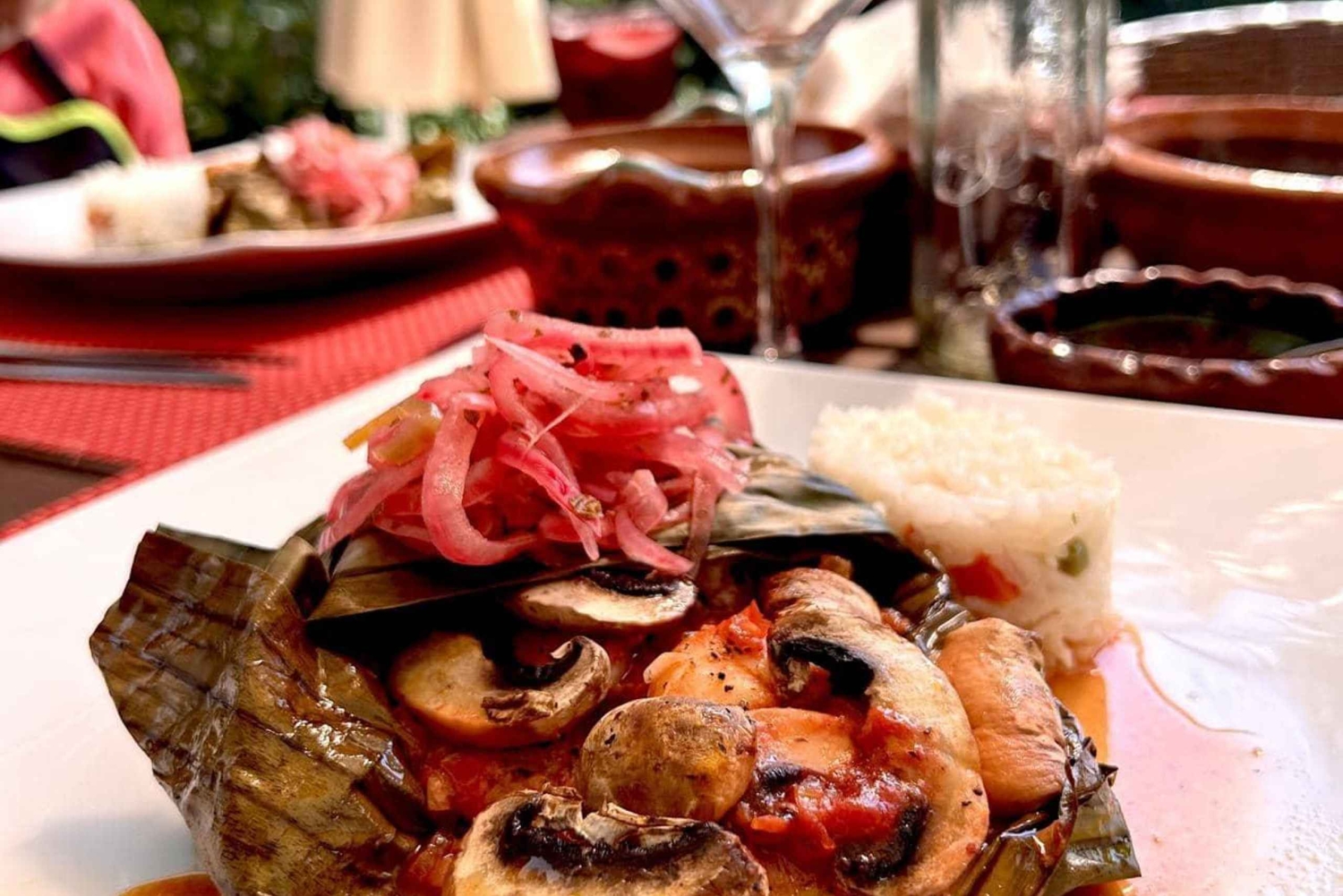 プラヤ デル カルメンの中心部で、本格的なメキシコ料理の料理教室やメキシコのカクテルと前菜の体験で、食の冒険に出かけましょう。袖をまくり上げ、エプロンを着用し、メキシコの美食を特徴づける豊かな味わいのタペストリーを味わいましょう。 活気に満ちたキッチンスペースに足を踏み入れると、スパイスの香りと新鮮な食材のジュージュー音があなたの感覚を目覚めさせます。情熱的なホストの専門的な指導の下、何世代にもわたって受け継がれてきた由緒あるテクニックと秘密のレシピを学びましょう。 メキシコのおいしい料理をマスターしたら、テキーラとメスカルの独特の風味と歴史に目を向けましょう。テイスティングで違いと類似点を学びましょう。Includes