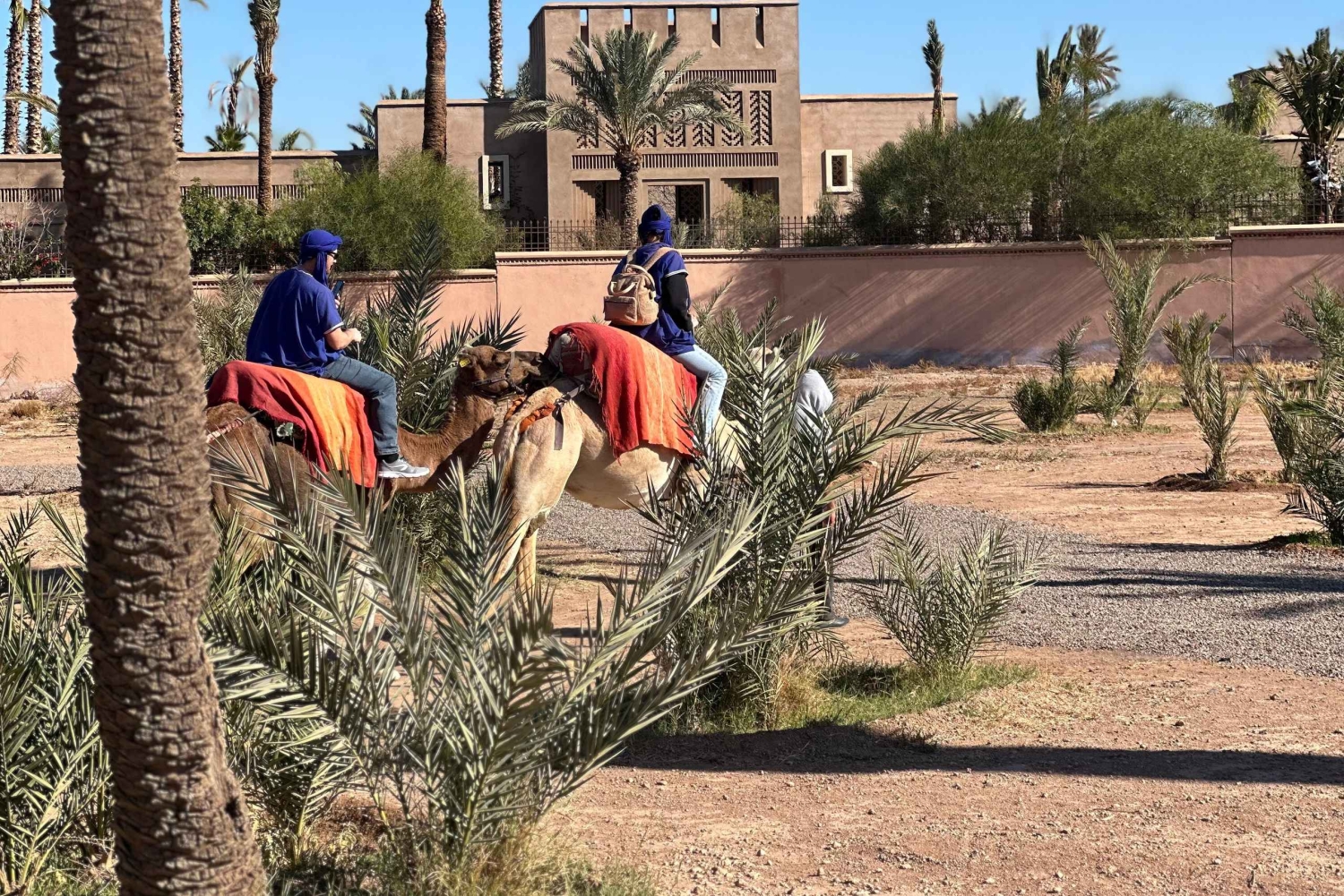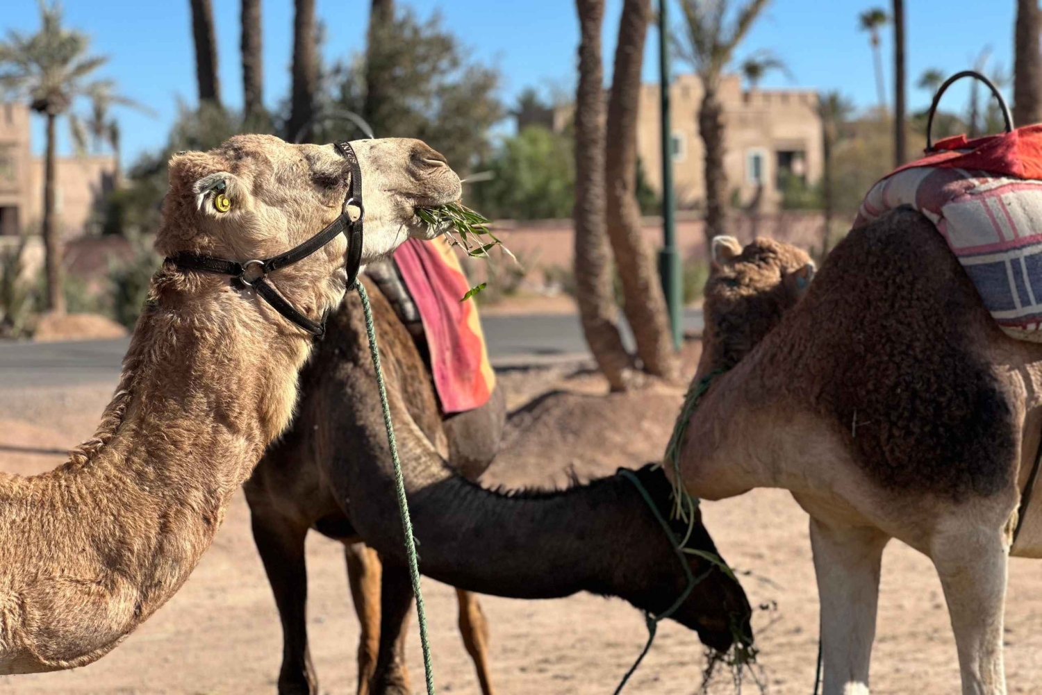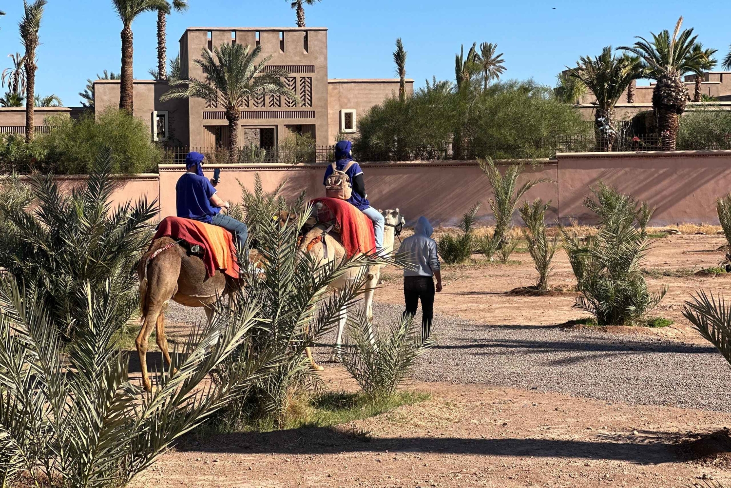 マラケシュの砂漠の端に到着すると、現地ガイドが温かくお迎えし、冒険が始まります。ラクダの扱いと安全について簡単に説明を受けた後、ラクダに乗り、ゆっくりと揺れるこの伝統的な移動手段のリズムに身を任せてください。出発すると、賑やかな街が後ろに消えていき、目の前には静かで広大な砂漠が広がります。 ヤシ園、乾燥した平原、小さな日干し煉瓦の家々を縫うように続く静かな道を進んでください。道中、古くからの伝統に従って暮らす地元の人々がいる、本物のベルベル人の村を通過します。ガイドがこの地域の日常生活、文化、歴史についてお話しするので、風景とのつながりをより深めることができます。 静寂と美しい環境を満喫していただける時間を提供いたします。 旅の途中で、地元の家や日陰のある休憩所で休憩を取りましょう。ここで、ミントティーと伝統的なお菓子をお出しし、モロッコのおもてなしをご堪能いただけます。リラックスして質問をしたり、周囲で展開される村の生活を観察したりするのに最適な時間です。 休憩の後は、夕方の光の中でラクダに乗って戻りましょう。夕方の砂漠はさらに幻想的な光景を呈します。ツアーは出発地点で終了し、ラクダとガイドに別れを告げます。美しい思い出と、マラケシュの田園地帯の魅力を心に残してお帰りください。Includes