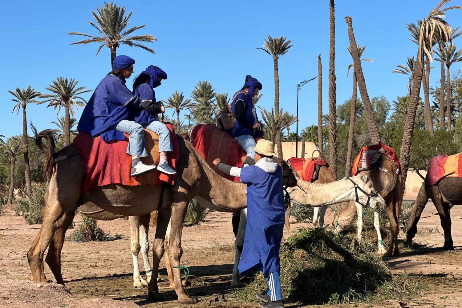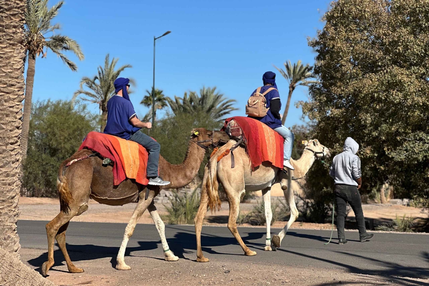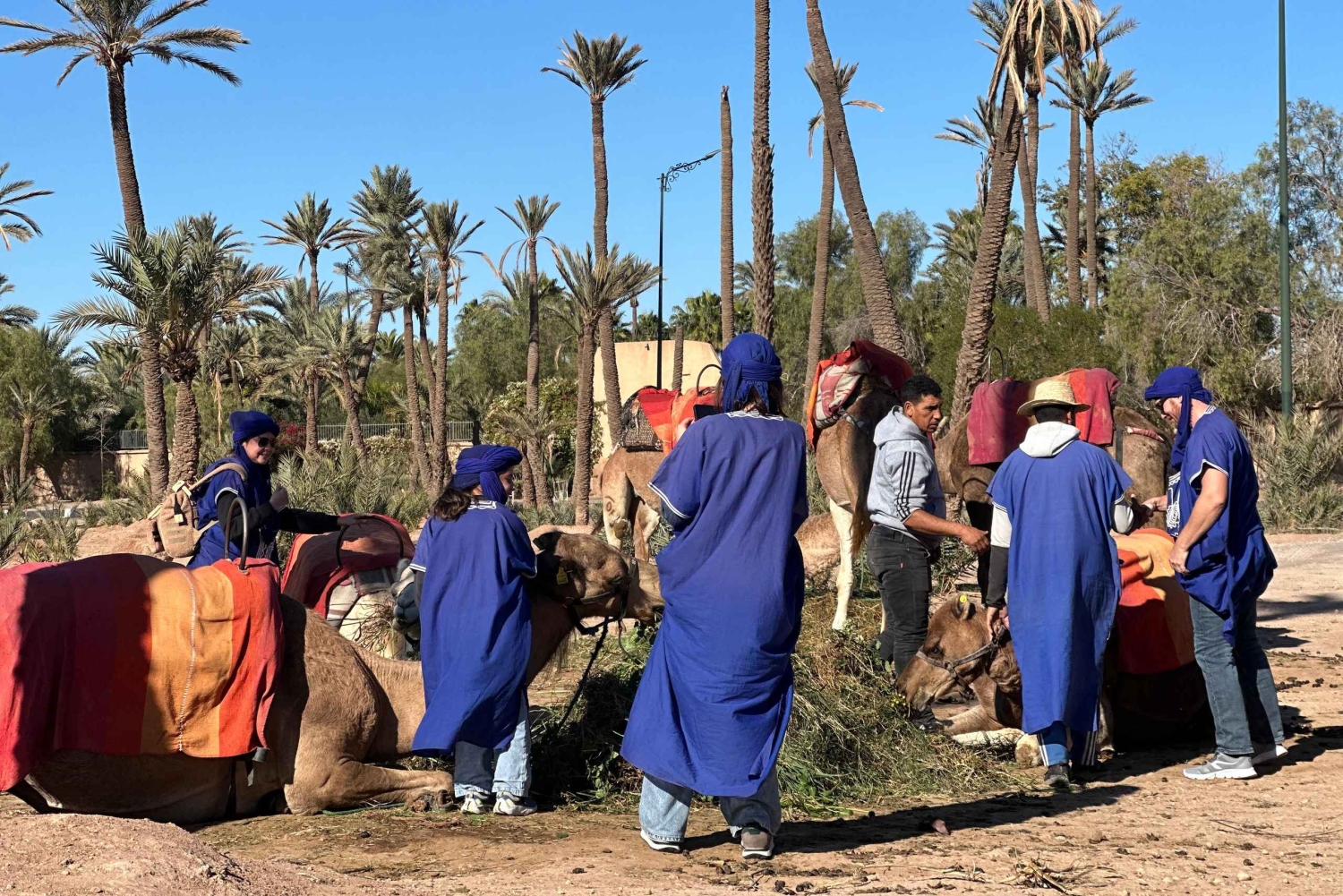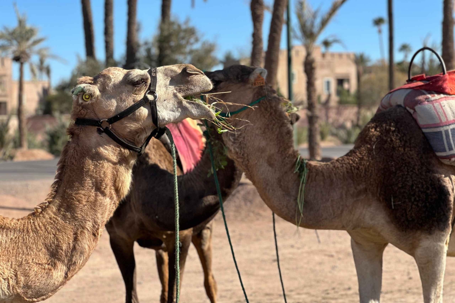 マラケシュの砂漠の端に到着すると、現地ガイドが温かくお迎えし、冒険が始まります。ラクダの扱いと安全について簡単に説明を受けた後、ラクダに乗り、ゆっくりと揺れるこの伝統的な移動手段のリズムに身を任せてください。出発すると、賑やかな街が後ろに消えていき、目の前には静かで広大な砂漠が広がります。 ヤシ園、乾燥した平原、小さな日干し煉瓦の家々を縫うように続く静かな道を進んでください。道中、古くからの伝統に従って暮らす地元の人々がいる、本物のベルベル人の村を通過します。ガイドがこの地域の日常生活、文化、歴史についてお話しするので、風景とのつながりをより深めることができます。 静寂と美しい環境を満喫していただける時間を提供いたします。 旅の途中で、地元の家や日陰のある休憩所で休憩を取りましょう。ここで、ミントティーと伝統的なお菓子をお出しし、モロッコのおもてなしをご堪能いただけます。リラックスして質問をしたり、周囲で展開される村の生活を観察したりするのに最適な時間です。 休憩の後は、夕方の光の中でラクダに乗って戻りましょう。夕方の砂漠はさらに幻想的な光景を呈します。ツアーは出発地点で終了し、ラクダとガイドに別れを告げます。美しい思い出と、マラケシュの田園地帯の魅力を心に残してお帰りください。Includes