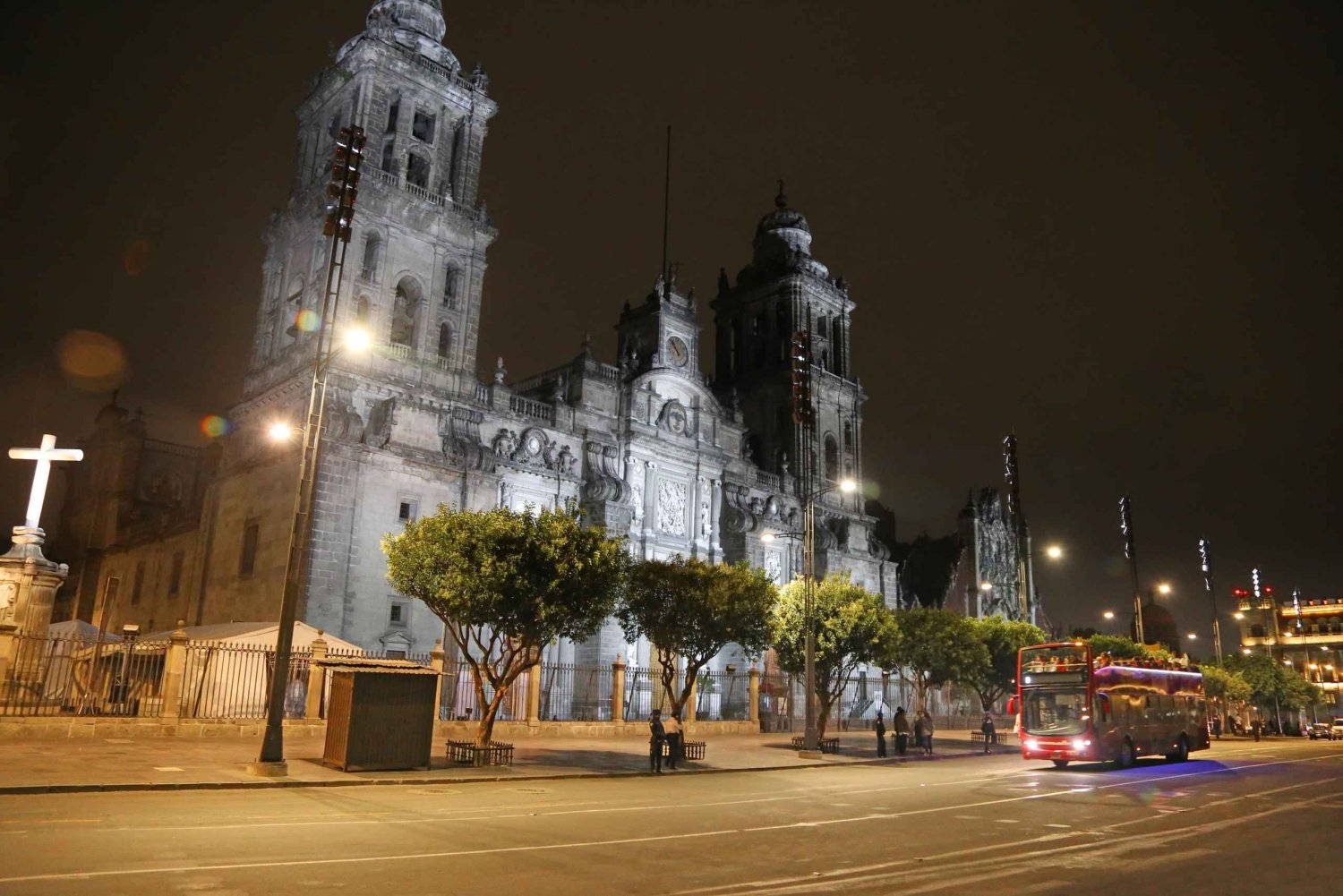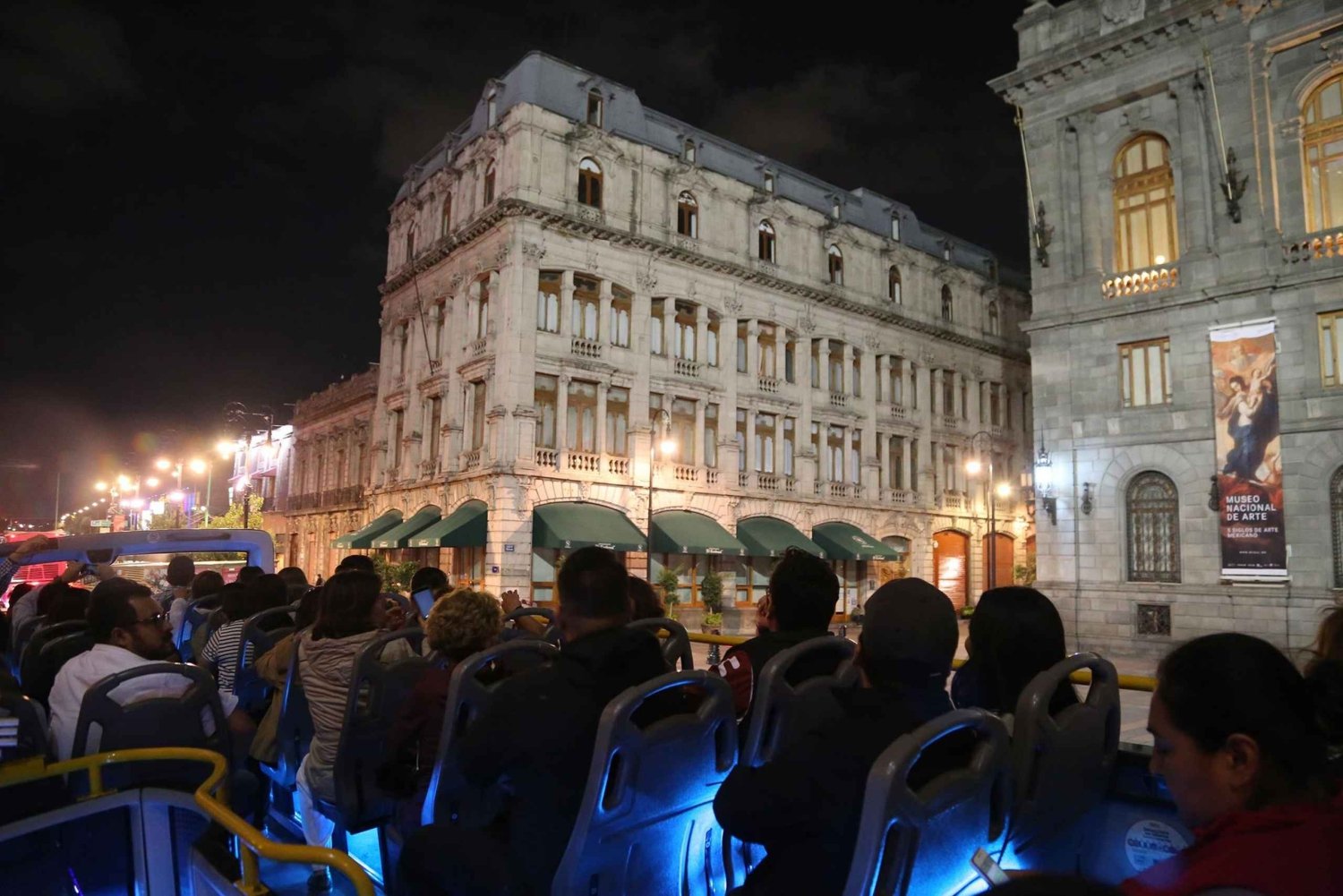 - 2 階建てバスで夜のメキシコ シティの観光ツアーをお楽しみください