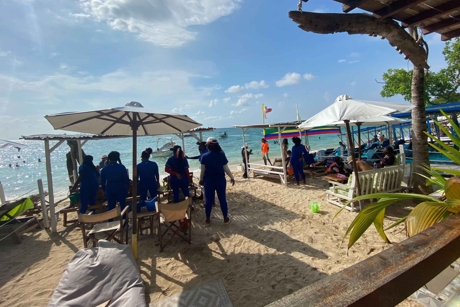 Waag je aan dit prachtige avontuur door de archipel van de Rosario-eilanden. Reis per sportboot naar eilanden zoals Isla Grande, Isla de Cholón en Playa Tranquila. We beginnen ons avontuur als we aankomen bij het trefpunt naast de klokkentoren. Nadat de hele groep klaar is, maken we ons klaar om op de sportboot te stappen onder begeleiding van onze bemanning en gids. Je kunt drankjes en snacks meenemen. De boot heeft een koelbox met ijs en is voor de hele groep. We maken een panoramische rondleiding over het eiland Bocachica met een historisch overzicht dat wordt verteld door onze oriëntatiegids. Als eerste activiteit ga je snorkelen met een masker, hier zie je koraalriffen en een vliegtuig op de bodem van de zee. Als je niet wilt snorkelen, geven we je de optie om je mee te nemen naar het Aquarium (entree niet inbegrepen). We bezoeken een eiland genaamd Cholón, beter bekend als het eiland van de feesten en genieten tegelijkertijd van de feeststemming, we hebben 1 uur op het eiland om een zeebad te nemen en verse zeevruchten te proeven. We komen aan op een ander rustiger eiland genaamd Agua Azul, hier hebben we 1 uur op het eiland om een zeebad te nemen en tropische vruchten te proeven. Tot slot, een van de meest begeerde bestemmingen door bezoekers, zoals Isla Barú, Playa Tranquila sector, een van de bestemmingen met een majestueuze kleur van het water en de witte zandkleur die betovert, een natuurlijke attractie die bekend moet zijn, hier zul je een heerlijke lunch, zeebad en rustige tijd nemen. Om 3 uur 's middags keren we terug, we komen aan om 4 uur 's middags. Onze tour eindigt bij de Pegasus Pier. De terugkeer naar het hotel is niet inbegrepen.Includes