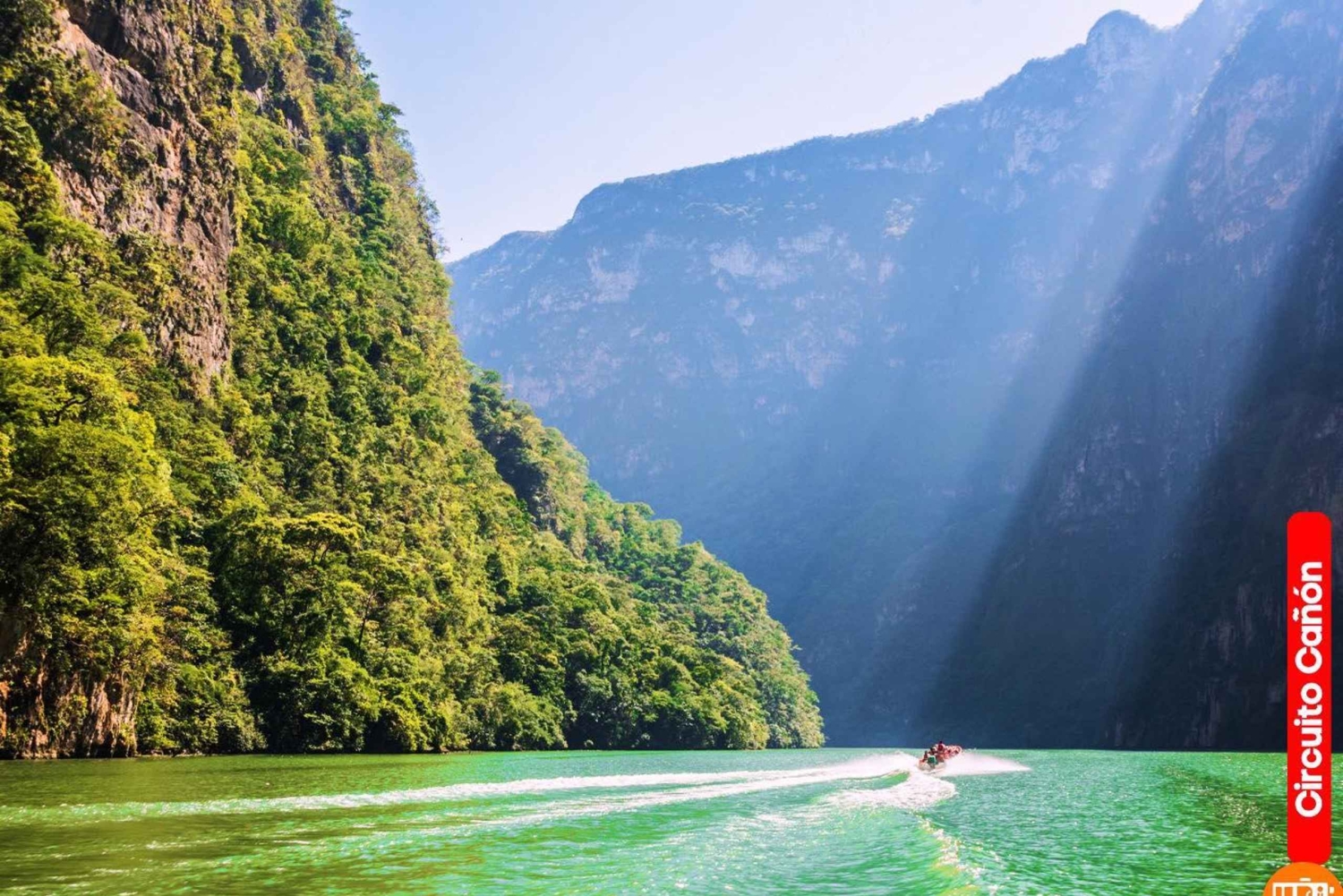 Begin aan een boeiende tour vanuit het centrum van Tuxtla Gutiérrez, waar het ritme van het plaatselijke leven doorklinkt. Stijg vervolgens op naar de adembenemende uitzichtpunten van de Sumidero Canyon en bewonder de grootsheid van de natuur. Verken vervolgens het charmante stadje Chiapa de Corzo, rijk aan geschiedenis en cultuur. Daal af naar Zoque Town, waar inheemse tradities bloeien. Sluit je reis af bij de Glorieuze Christus van Copoya, een iconisch symbool dat over de stad uitkijkt en een panoramisch uitzicht en spirituele reflectie biedt.Includes