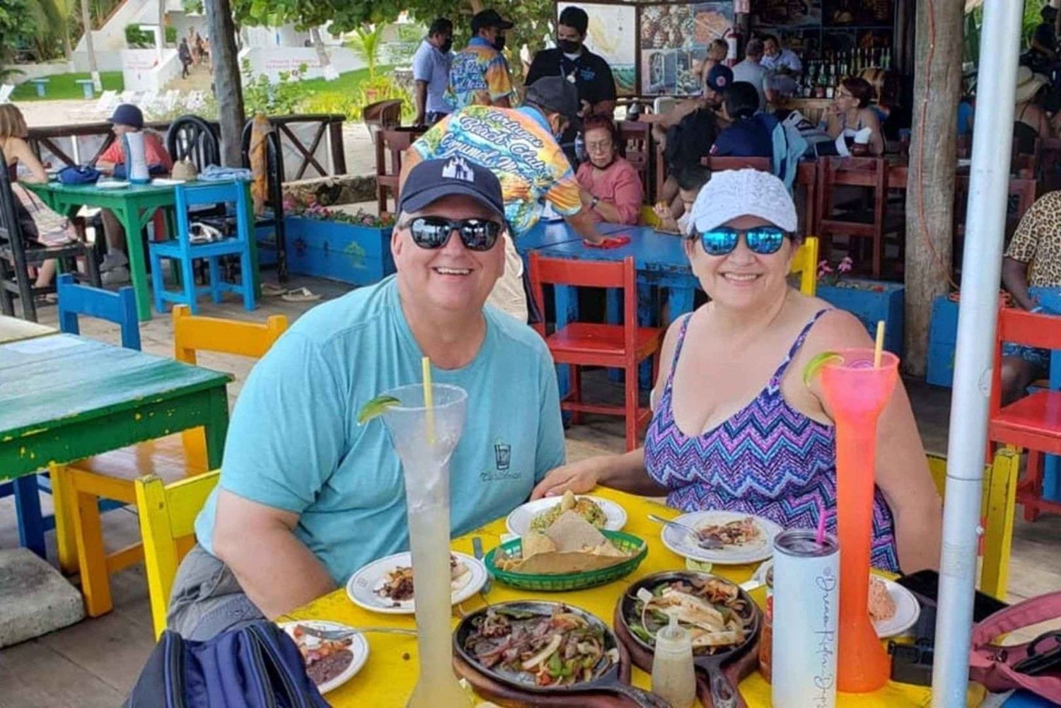 Deze excursie is dezelfde populaire excursie als op Carnaval, maar tegen een goedkopere prijs, en biedt een evenwichtige mix van culturele verkenning en ontspanning op het strand. Perfect voor wie op zoek is naar een unieke en gedenkwaardige ervaring in Cozumel. Begin je avontuur met een mooie rit naar het hart van het centrum van Cozumel. Breng 1,5 uur door met het verkennen van levendige markten, boetiekjes en lokale bezienswaardigheden, die de essentie van de cultuur en charme van Cozumel weergeven. Geniet van een tequilaproeverij en proef de rijke smaken van de iconische Mexicaanse drank. Ga vervolgens naar een prachtig strand waar je ongeveer 2 uur lang kunt ontspannen op ligstoelen, hangmatten en onder parasols. Geniet van de zon, neem een verfrissende duik of ga met je gids mee op een snorkelavontuur om het prachtige onderwaterleven van Cozumel te ontdekken. Snorkelspullen zijn aanwezig. Profiteer tijdens de hele tour van de persoonlijke service en lokale inzichten van onze vriendelijke en deskundige gidsen. Geniet van de flexibiliteit en exclusieve voordelen waarmee Cozumel Island Transfers zich onderscheidt, zoals korting op extra aankopen en huurprijzen tijdens je tour. Onze vertegenwoordiger zal op je wachten bij het trefpunt, met een bordje met je naam om een naadloze start van je avontuur te garanderen.Includes