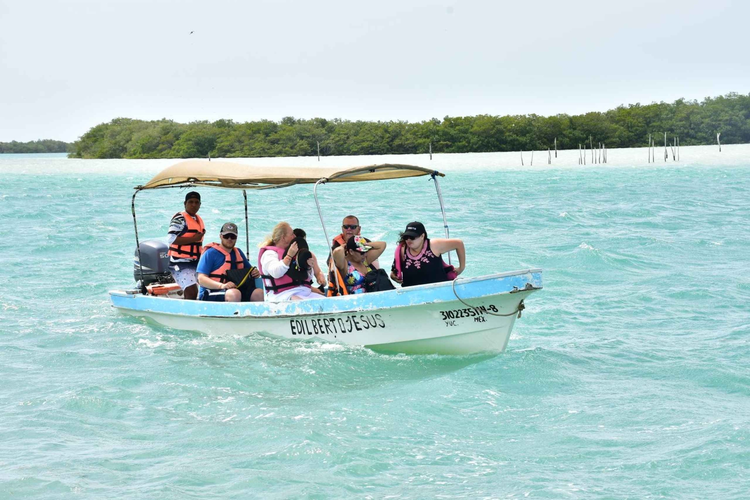 Verken het Rio Lagartos Biosfeerreservaat tijdens een roze tocht. Vaar door de mangroven en bewonder de diverse wilde dieren, waaronder flamingo's, pelikanen, reigers, adelaars en krokodillen. Neem een Mayabad en geniet van een lunch met zeevruchten. Vaar door de mangroven van het ecologisch reservaat en bewonder de diverse wilde dieren. Bekijk verschillende diersoorten in hun natuurlijke omgeving, zoals flamingo's, pelikanen, reigers, adelaars en krokodillen. Leer meer over het zoutproces en bekijk de roze gekleurde vijvers. Neem een Mayabad bij de modderheuvels om je huid te hydrateren. Neem daarna een bad in het zoete water van deze prachtige plek. Sluit je avontuur af door de lokale gastronomie te proeven met een vislunch bereid door de dorpelingen.Includes
