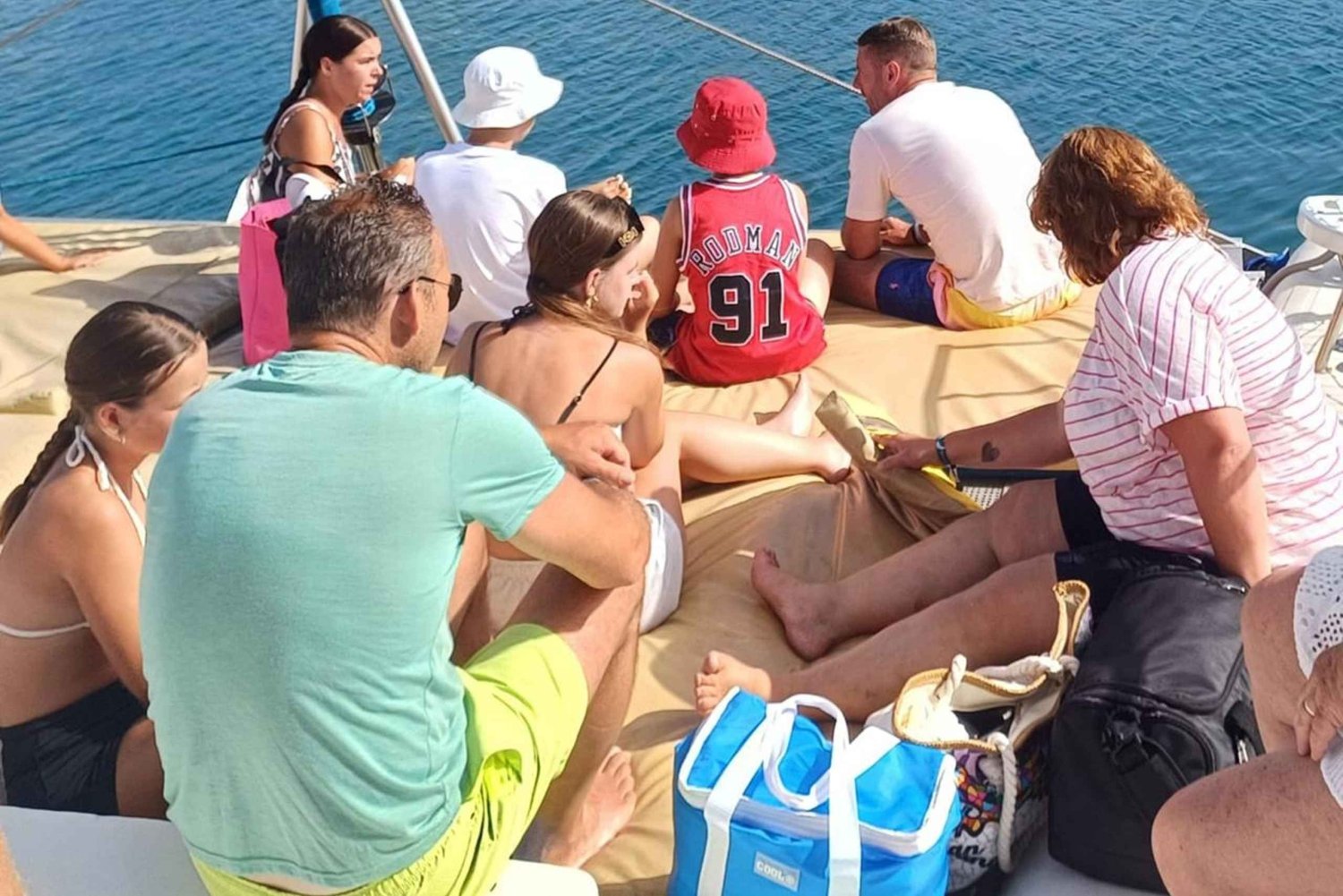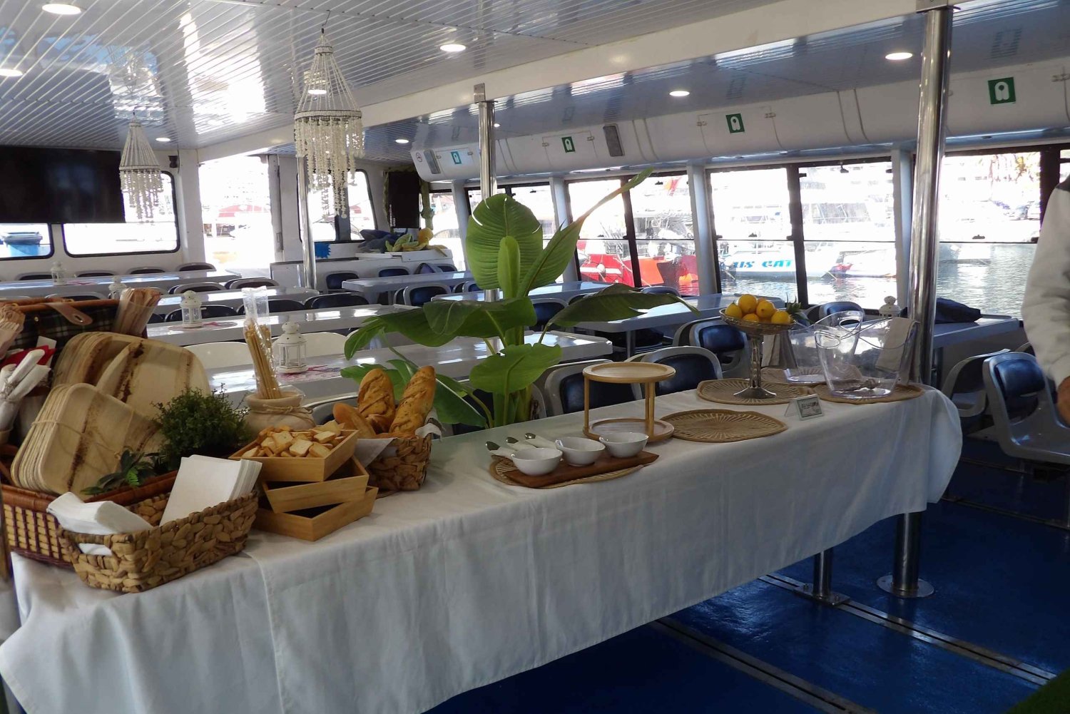 Geniet van een prachtige excursie waarbij we de zuidkust van het eiland Gran Canaria bezoeken, ontspannen met muziek, zon en een schitterende sfeer aan boord van onze catamarans. We zullen de stranden en kliffen zien. Op onze route kun je af en toe vliegende vissen, schildpadden en dolfijnen zien. We kunnen de waarneming niet garanderen. We gaan voor anker in een exclusieve baai waar we de lunch serveren, we kunnen zwemmen, wateractiviteiten doen of de zeebodem en de vissen bewonderen door onze onderwatervisie. Inbegrepen in de prijs: Lunch, drankjes (water, frisdrank, biertjes, mojito) Bananen boottocht.Includes