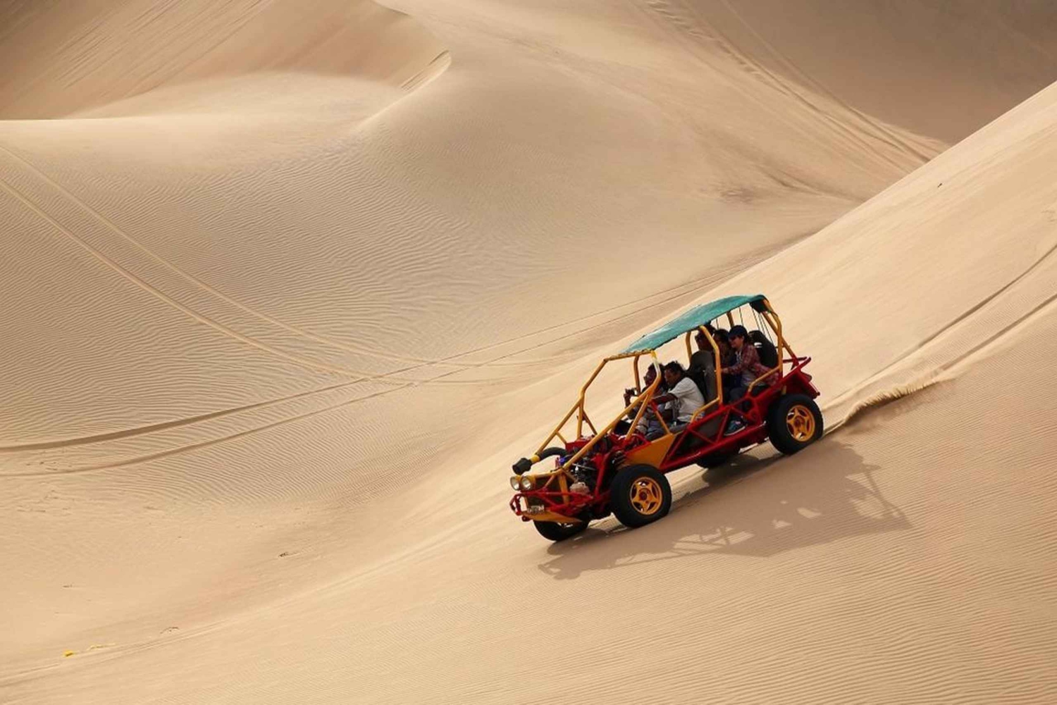 Verken de prachtige landschappen buiten Lima terwijl je naar Paracas en Huacachina reist. Begin je avontuur om 6.00 uur met een comfortabele rit van 4 uur met direct vervoer naar Paracas, een charmant stadje aan zee. Reis comfortabel aan boord van onze ruime bus met airconditioning, met veel ruimte om je te ontspannen en van de reis te genieten. Laat je niet door andere bedrijven in een kleine minibus zetten. Bij aankomst ga je op een boottocht van 2 uur naar de Ballestaseilanden, vaak een kleinere versie van de Galapagos genoemd, waar je zeeleeuwen, Humboldtpinguïns en een verscheidenheid aan vogels in hun natuurlijke habitat kunt observeren. Na je boottocht ga je naar een lokale wijngaard, waar je geniet van een begeleide pisco-proeverij en leert hoe de iconische sterke drank van Peru wordt gemaakt. Deze stop geeft je ook vrije tijd voor de lunch, met de kans om heerlijke Peruaanse gerechten te proberen, direct bij de wijngaard. Ga vervolgens verder naar Huacachina, een pittoreske oase in de Ica-woestijn, bekend om zijn torenhoge zandduinen, enkele van de grootste in Zuid-Amerika. Hier heb je de mogelijkheid om deel te nemen aan een opwindend buggy- en sandboardingavontuur (optioneel – extra kosten) over de duinen, een onvergetelijke ervaring in de enige natuurlijke woestijnoase van Zuid-Amerika. 's Avonds kun je ontspannen tijdens de busrit terug naar Lima, waar je rond 23.45 uur aankomt en wordt afgezet op dezelfde locatie als waar je bent opgehaald.Includes