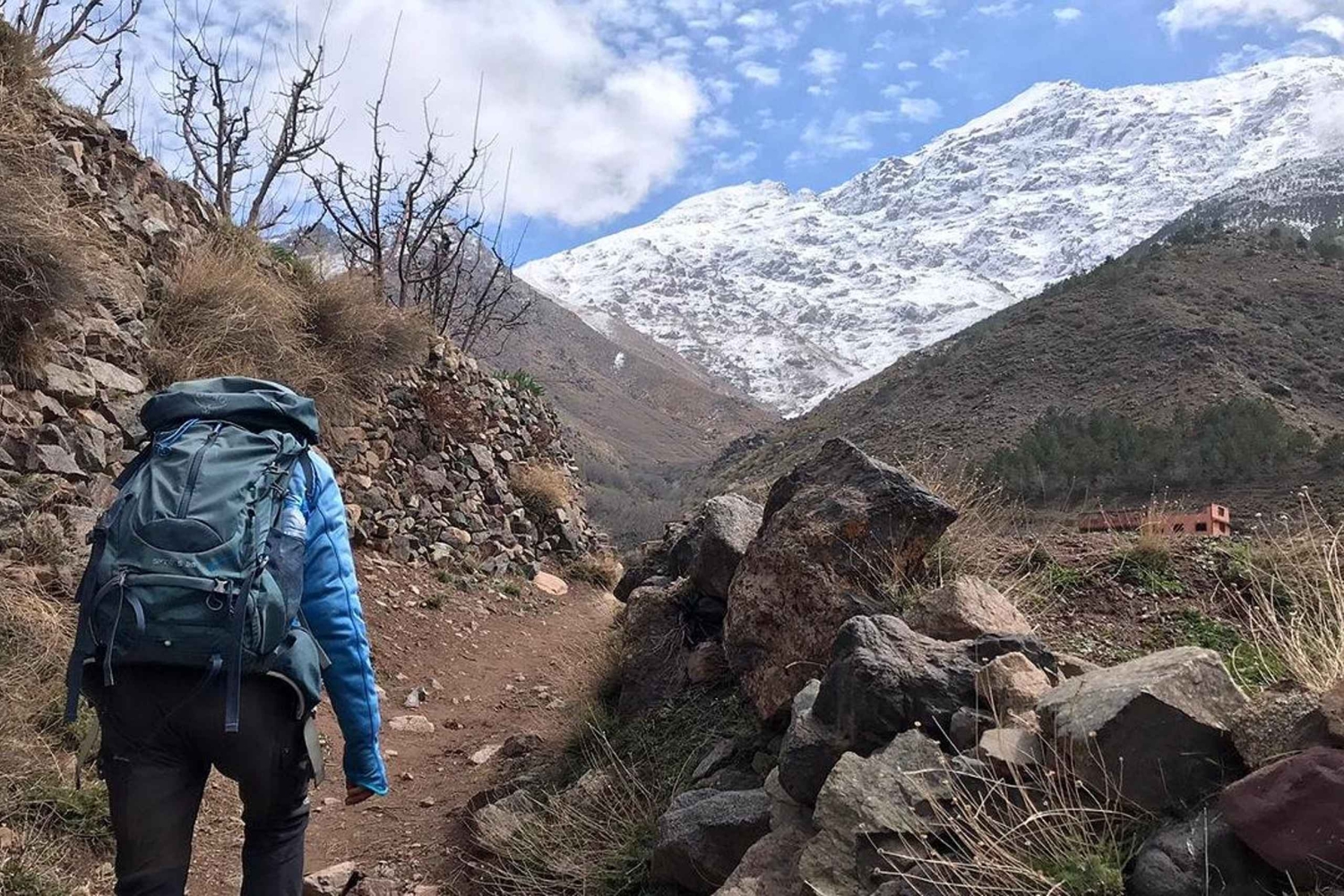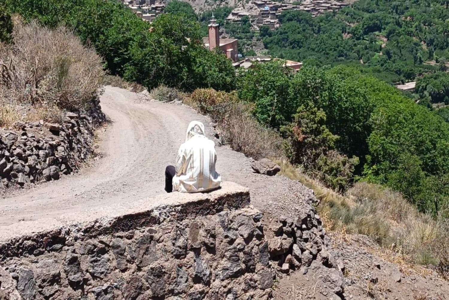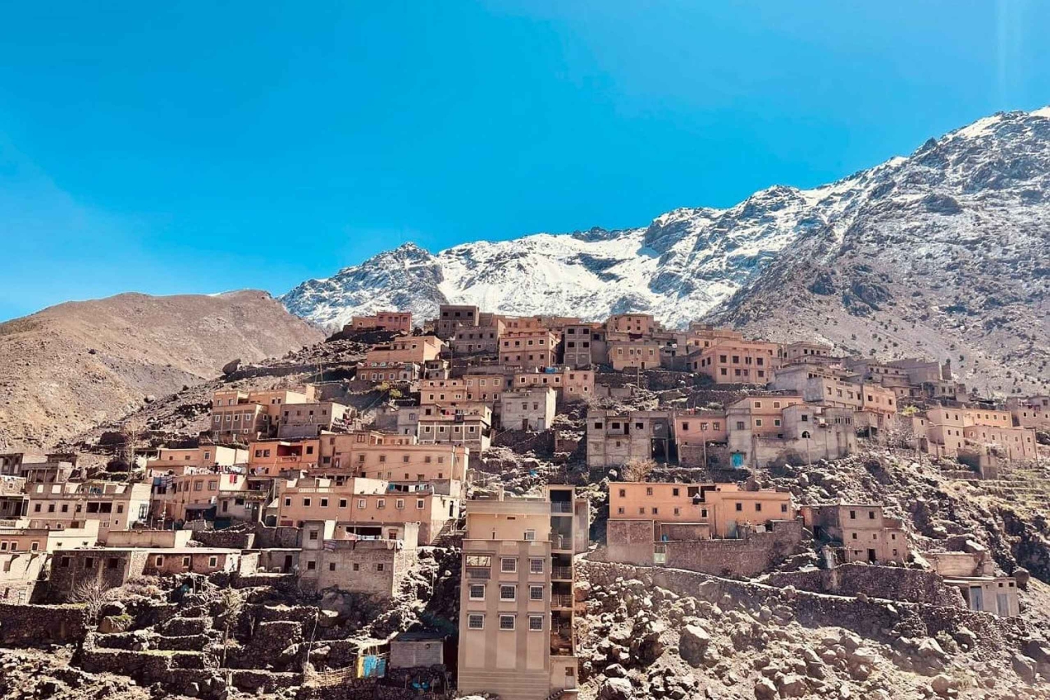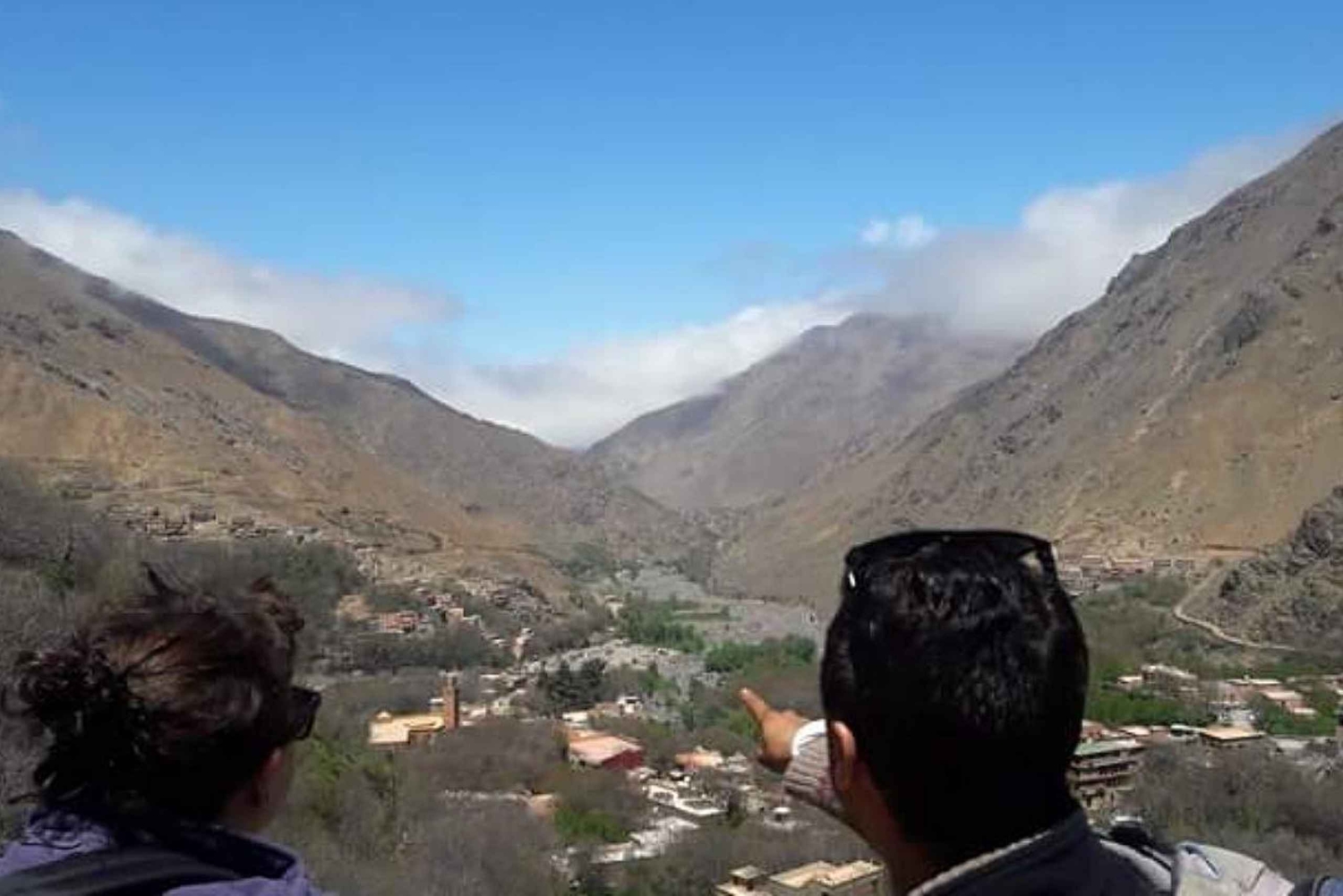 Etter å ha forlatt Marrakech (den røde byen), vises Atlasfjellet inkludert de høyeste toppene, starter med landsbyen Tahnaout og tar bilder av de lokale landsbyene, møter lokale kvinner, besøker markedet hvis dette er tirsdag eller lørdag når lokalbefolkningen kommer alle for å kjøpe sine behov fra markedene. En valgfri kameler på plass i nærheten av Moulay Brahim, ri i kort tid langs Righaya-elven. Turen fortsetter til det lille Chamonix i Atlasfjellet, det er Imlil, en liten landsby i Atlasfjellet, her starter fotturen rundt berberlandsbyer og daler i Ait Mizan-dalen, litt myntete serveres i lokale hus selvfølgelig med noen lokale nøtter ... Turen blir nydelig etter hvert som vi kommer høyere og nyter utsikten fra de øverste landsbyene som ligger rundt dalene. Lunsj spiser vi i vårt lokale hus, Tajine, eller couscous, lokal salat, frukt og selvfølgelig myntete som er vår tradisjonelle drikk. Etter lunsj går dere en kort spasertur for å møte sjåføren og komme tilbake til Marrakech innen kl. 17.00.Includes