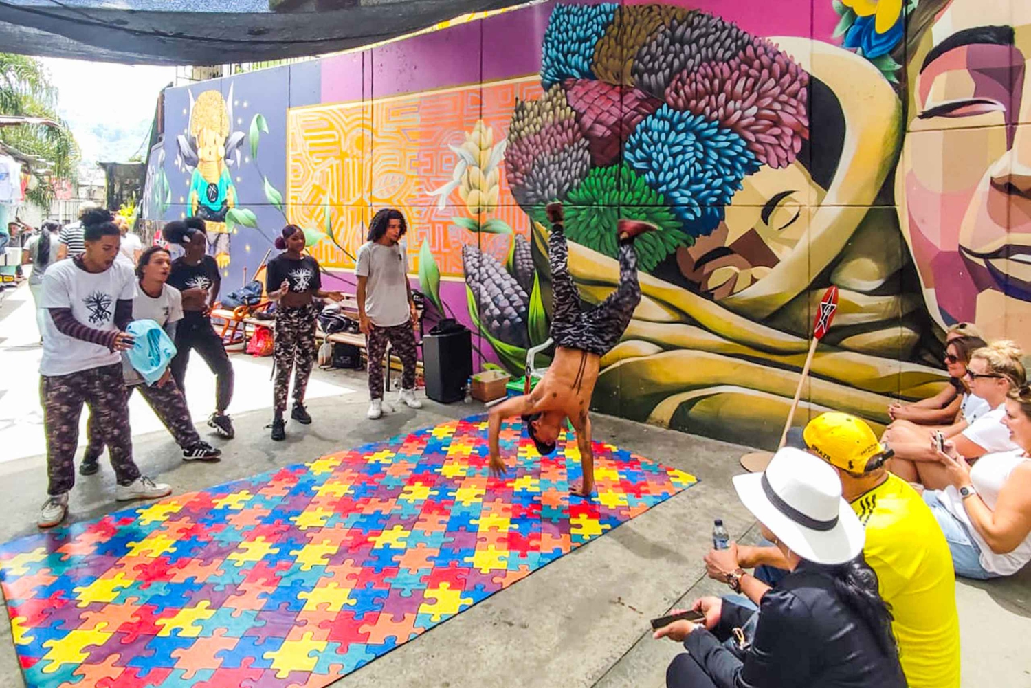 Odkryj transformującą sztukę graffiti Columna 13 podczas wycieczki z przewodnikiem po Medellin. Przejedź się metrem, wespnij się do domów na szczycie góry za pomocą kabla metra i wsiądź do autobusu publicznego w dzielnicy graffiti na pieszą wycieczkę pełną sztuki, muzyki, jedzenia i przyjaznej atmosfery sąsiedztwa. Zacznij na stacji metra Poblado i spotkaj się z przyjaznym przewodnikiem i grupą na ten dzień. Wskocz do pociągu metra, aby dotrzeć do kolejki linowej Metrocable w Medellin i wjedź na szczyt góry. Ciesz się spektakularnym punktem widokowym i poznaj system transportu w mieście. Jedź dalej autobusem do dzielnicy graffiti, gdzie rozpocznie się Twoja piesza wycieczka. Odwiedź Muzeum Kawy, wypij filiżankę wysokiej jakości kawy i dowiedz się o przetwarzaniu kawy i ciężkiej pracy wykonywanej przez rolników z Medellin. Następnie pozwól swojemu przewodnikowi poprowadzić Cię ulicami wypełnionymi ekspresyjną sztuką, w tym graffiti, obrazami olejnymi i ubraniami z nadrukami graffiti. Poznaj dobre jedzenie, muzykę i pokazy tańca w tej tradycyjnej dzielnicy. Poznaj znaczenie graffiti stworzonego przez lokalnych artystów i dowiedz się, jak ten obszar został przekształcony w czasie. Spróbuj tradycyjnego kolumbijskiego jedzenia ulicznego, a następnie udaj się do baru z najlepszymi widokami w mieście na drinka, aby poznać innych podróżników.Includes