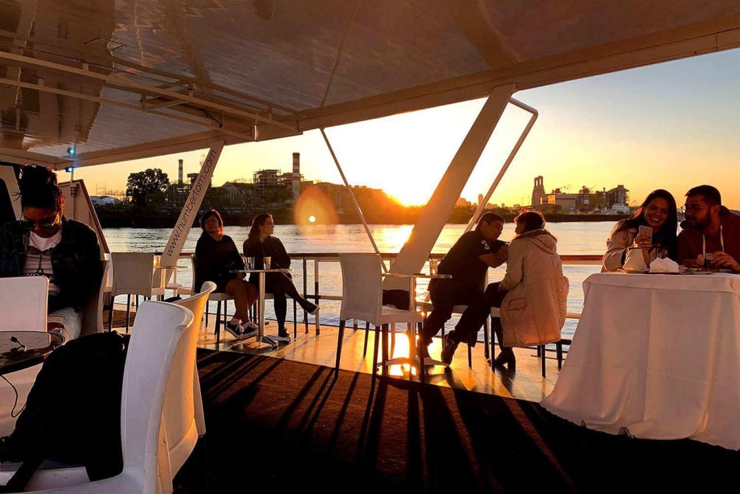 - Vive a música ao vivo e uma atmosfera vibrante a bordo de um barco com controlo de temperatura