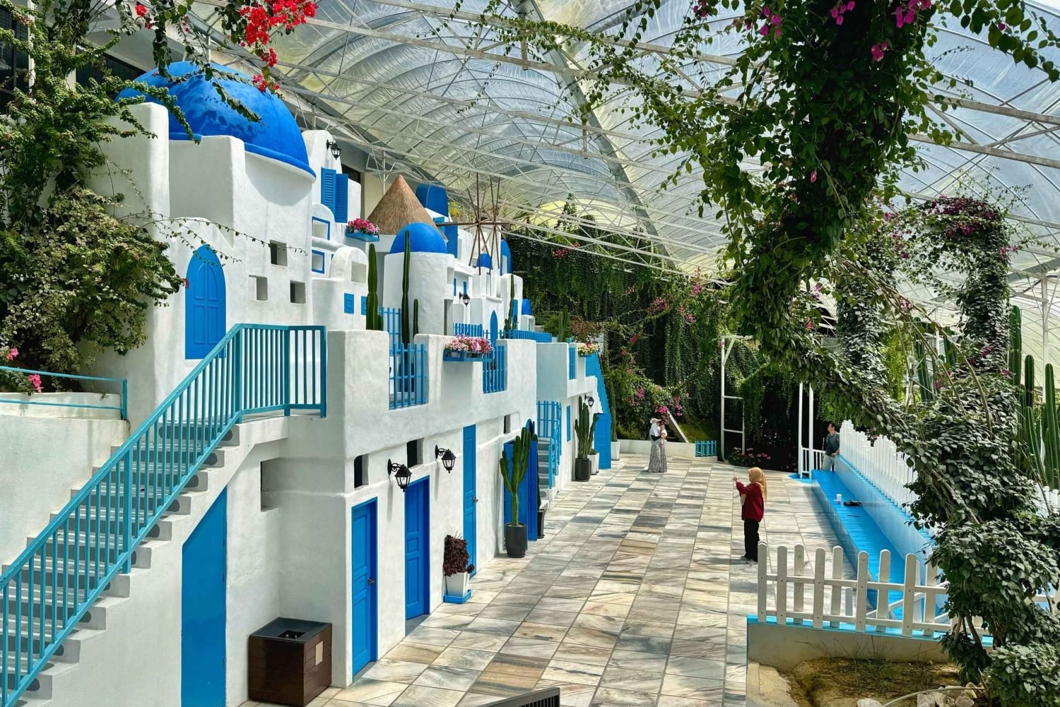 - Explora a Mini Santorini, os Flower Mounds, o Aviário e o Mini Zoo