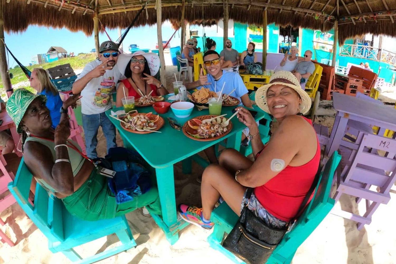 Садитесь за руль джипа и исследуйте Косумель в рамках частного тура. Полюбуйтесь местной растительностью и узнайте о его флоре и фауне, а также о местной культуре и традициях. Мы заберем вас и вашу семью/друзей из любой точки острова Косумель. Пожалуйста, убедитесь, что вы выбрали место встречи при бронировании. Тур начинается с поездки по городу, пока мы не доберемся до ранчо текилы. Здесь вы можете узнать весь процесс дистилляции этого напитка, попробовать его различные вкусы, запахи и цвета... Поздоровайтесь с местными жителями ранчо, коровами, курами и многим другим. Уверены, это будет прекрасное время! После тура по текиле мы исследуем прекрасные пляжи на восточной стороне острова. На другой стороне Косумеля есть великолепные пляжи с белым песком, дыхала, завораживающие скальные образования, пещеры, секретные пляжи, внедорожные тропы и многое другое. Ваш личный гид проведет вас по лучшим местам и откроет скрытые пляжи и пещеры, которые многие туристы никогда не увидят. На этой стороне острова нет электричества, только несколько разбросанных пляжных ресторанов/баров, которые идеально вписываются сюда. По-настоящему более девственная сторона Косумеля. Проезжайте по лесным дорогам, пока не доберемся до пляжного клуба. С разыгравшимся аппетитом садитесь и наслаждайтесь включенным в стоимость обедом из настоящей мексиканской еды. Позже окунитесь в великолепное Карибское море и поплавайте с маской и трубкой среди красочных морских обитателей. Возьмите шезлонг и уделите немного времени отдыху на пляже и слушайте, как нежные волны разбиваются о береговую линию. Настройте свой маршрут и добавьте дополнительные мероприятия за свой счет, такие как археологические раскопки Сан-Хервасио, экопарк и маяк Пунта-Сур, ранчо Буэнависта с исследованием пещер, плавание с дельфинами, водные лыжи, верховая езда.Includes