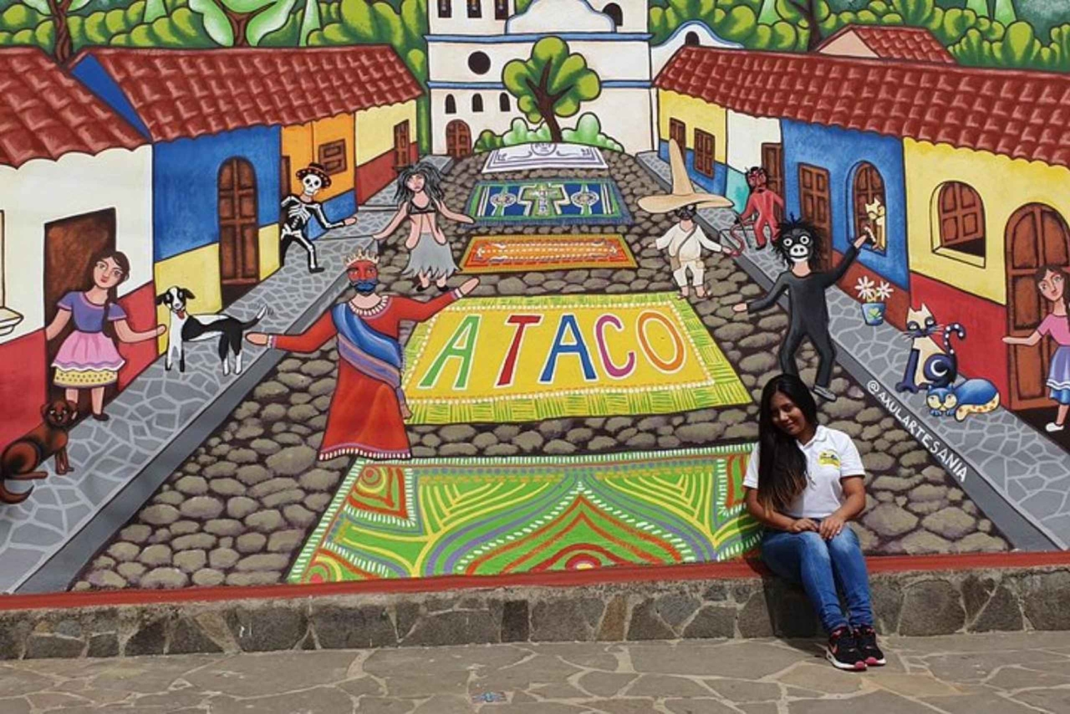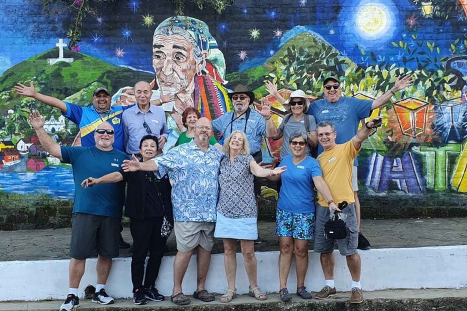 Upplev den livliga kulturen och naturskönheten i La Ruta de las Flores på denna dagsutflykt i liten grupp från San Salvador. Börja din resa med ett bekvämt, luftkonditionerat fordon som ser till att du slipper krångla med dyra taxibilar eller navigera begränsade busstidtabeller. Din expertguide leder dig genom höjdpunkterna i Apaneca-bergen och ger dig insikter i den lokala historien och kulturen. Ditt äventyr börjar på Mercado Municipal i Nahuizalco, där du kan fördjupa dig i den livliga atmosfären på områdets bästa färskvarumarknad. Här får du möjlighet att utforska lokala produkter och hantverk och uppleva lokalbefolkningens dagliga liv. Därefter åker du till Concepcion de Ataco, som är känt för sina livliga matfestivaler på helgerna. Njut av den livliga atmosfären, prova utsökt lokal mat och beundra de färgglada gatumålningarna som pryder staden. Fortsätt till Juayua, en pittoresk kolonialstad som är känd för sin charmiga arkitektur och rika historia. Promenera genom gatorna, besök historiska kyrkor och njut av den fridfulla atmosfären. Under turen besöker du också ett lokalt kaffeplantage där du kan lära dig mer om kaffeproduktionsprocessen från böna till kopp. Det här är ett perfekt tillfälle att smaka på något av El Salvadors finaste kaffe. Turen avslutas med en återresa till San Salvador, där du släpps av vid din valda upphämtningsplats. Du är då redo att reflektera över en dag fylld med oförglömliga upplevelser och nya minnen.Includes